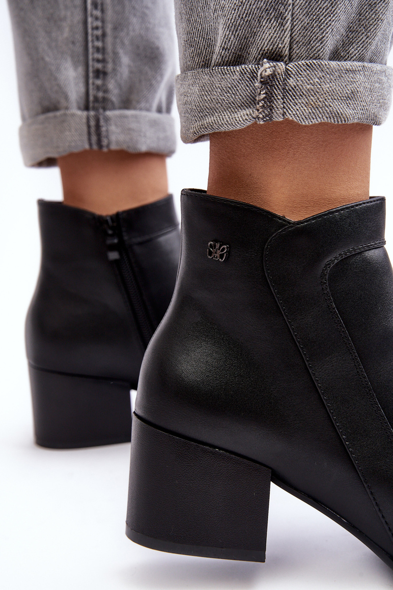 Шкіряні ботильйони на низькому каблуці Чорні Cidi