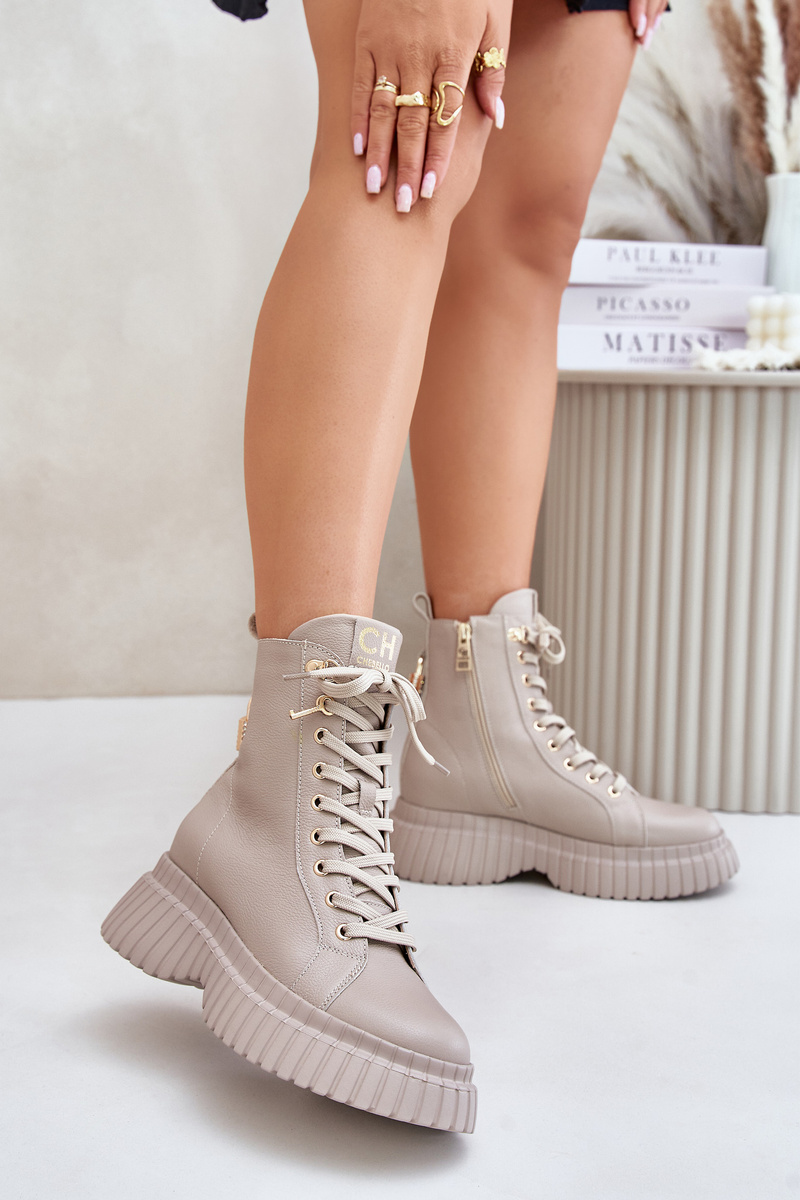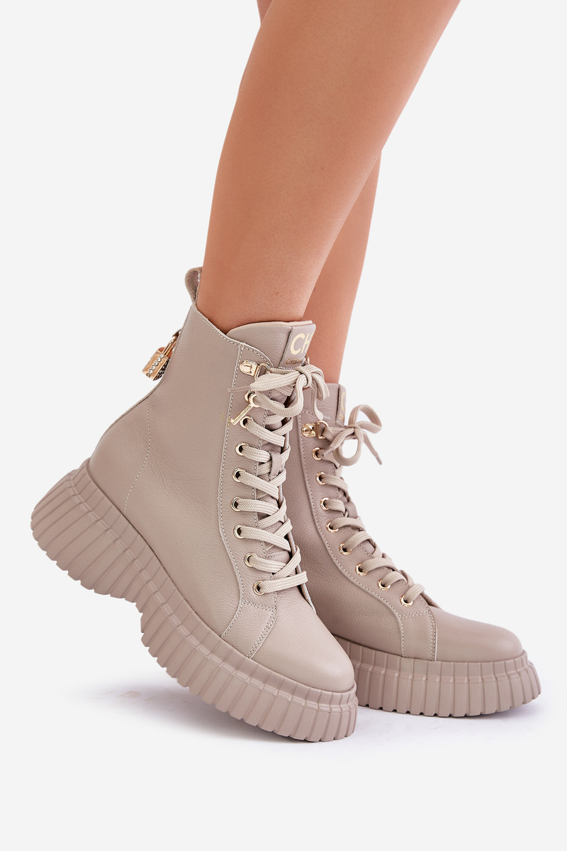 Шкіряні ботильйони на платформі на блискавці та декоративному замку CheBello 4517 Бежеві
