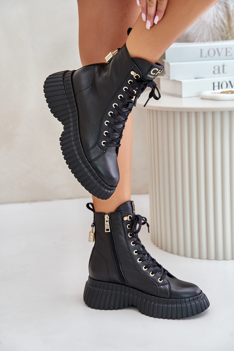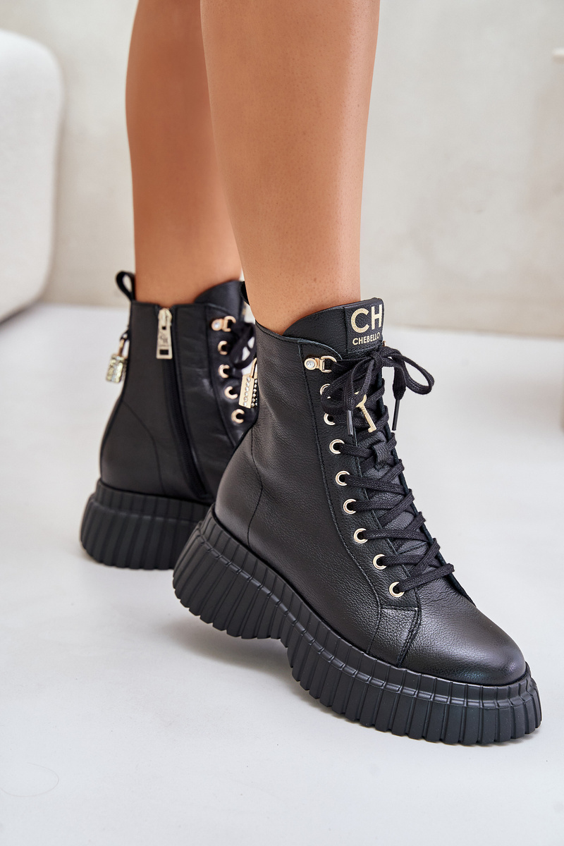 Шкіряні ботильйони на платформі на блискавці та декоративному замку CheBello 4517 Чорні