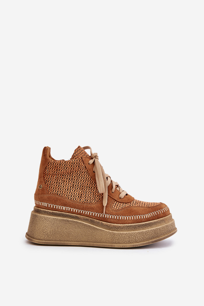 Шкіряні ботильйони на платформі та танкетці Maciejka Коричневі 06759-29