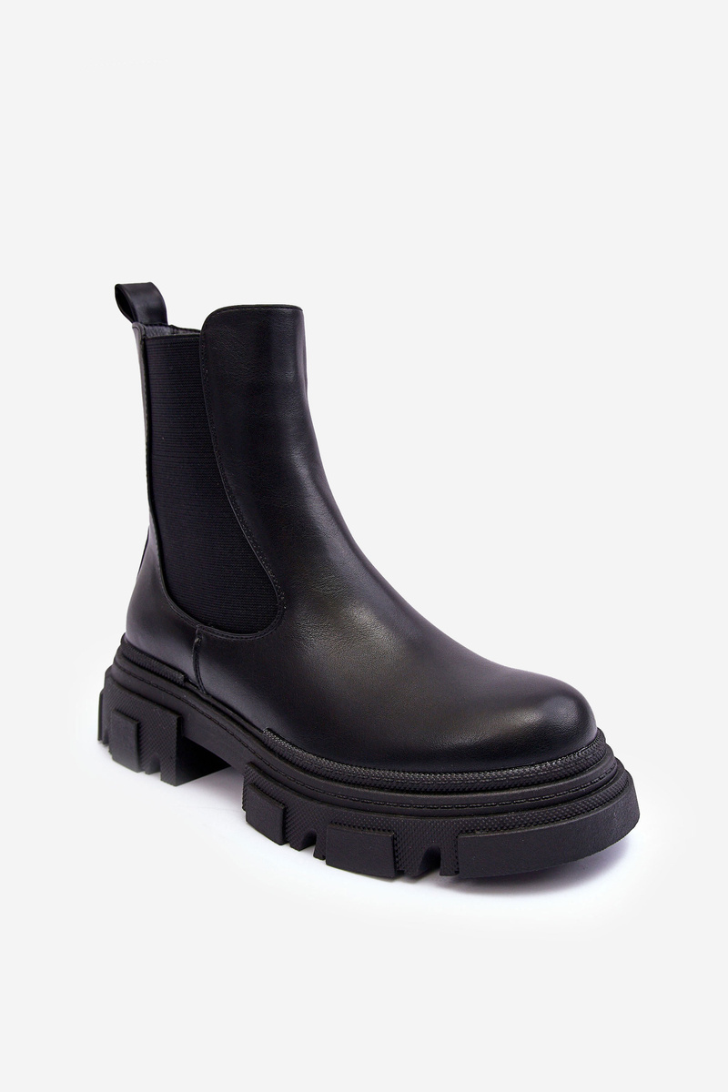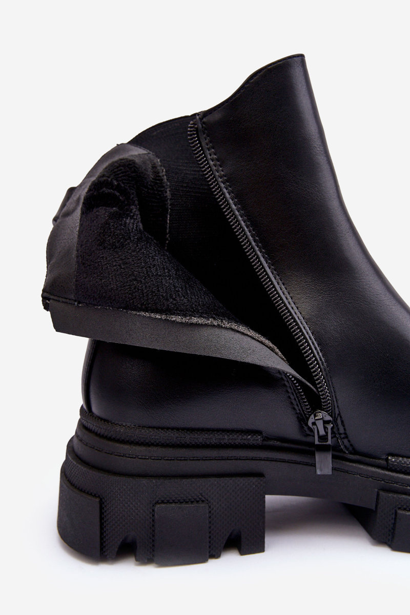 Шкіряні ботильйони на плоскій каблуці та платформі Чорні соліти