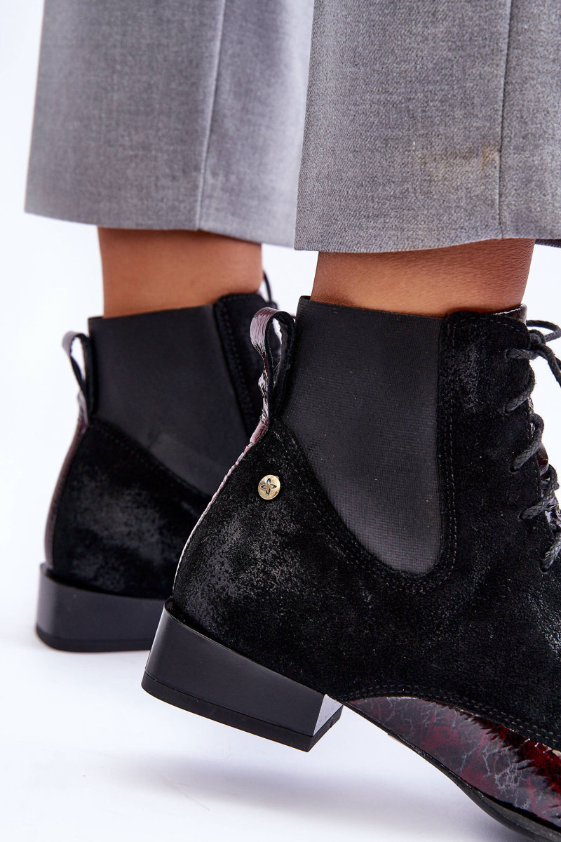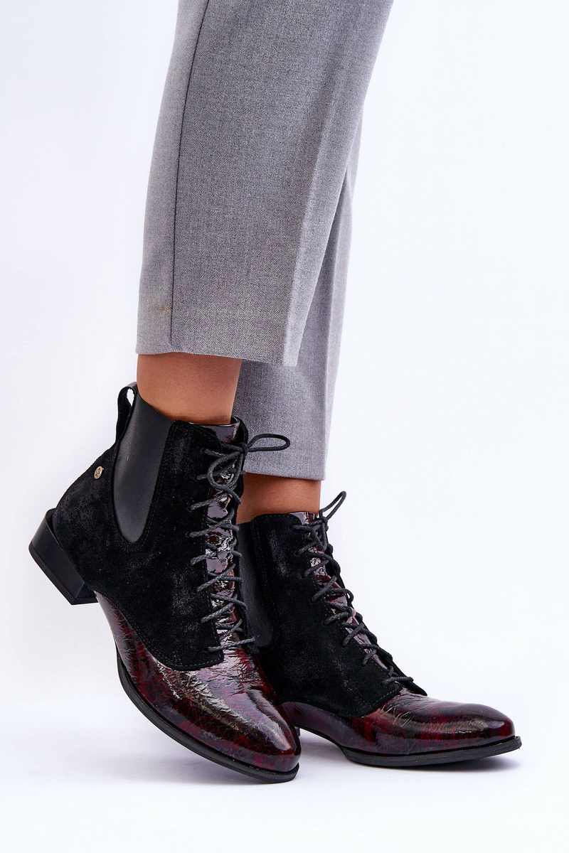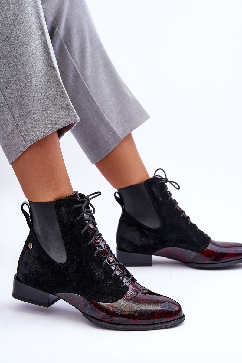 Елегантні черевики від відомого бренду Maciejka. Виготовлений з натуральної шкіри найвищої якості. Модель з ботильйоном, застібається збоку на блискавку і додатково шнурується. Плоский каблук забезпечує стабільність під час кожного кроку. Взуття не має утеплювача. Верх оснащений еластичними вставками. Вони будуть чудово виглядати в багатьох укладках. Ви повинні мати їх! При виборі розміру орієнтуйтеся на таблицю розмірів.