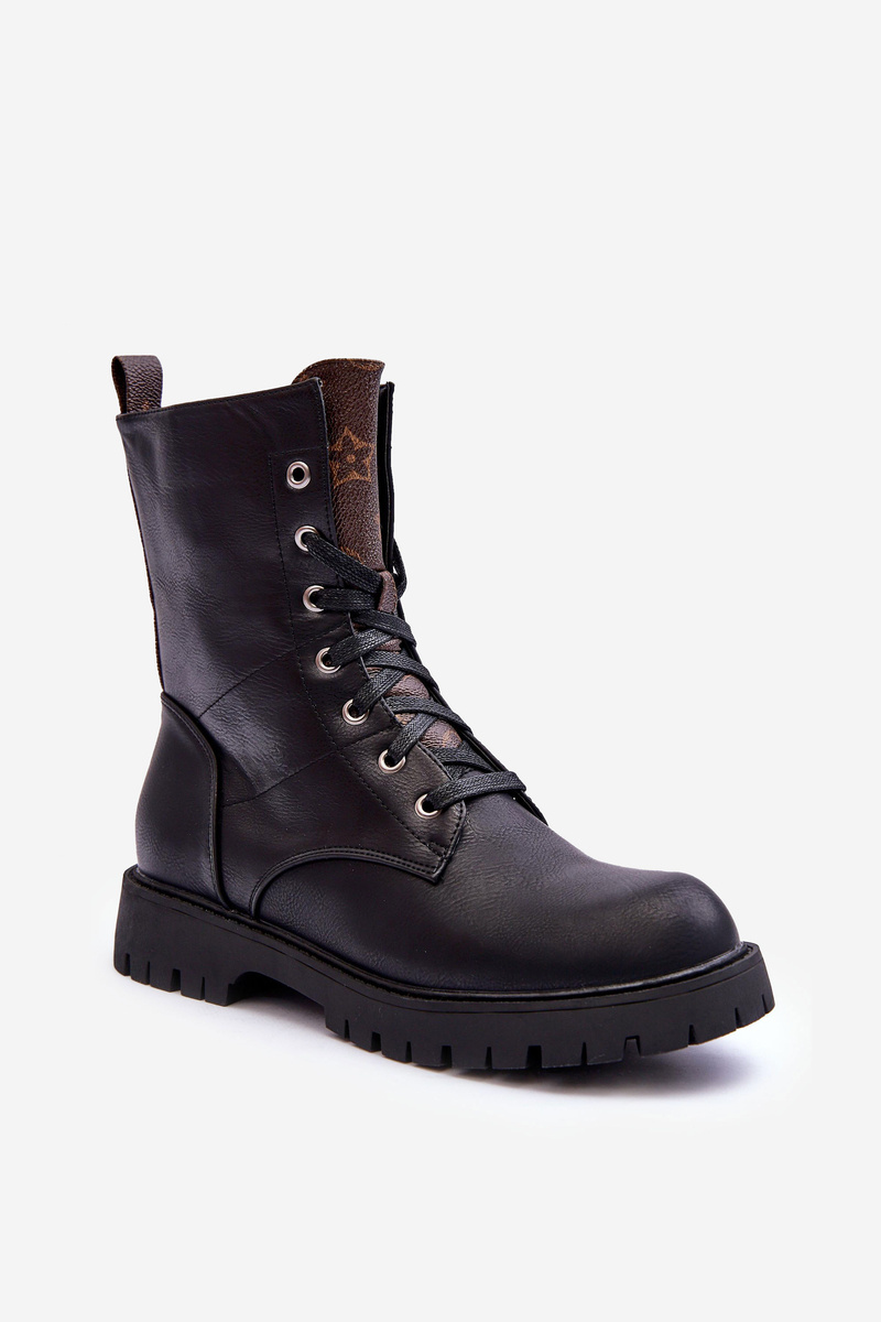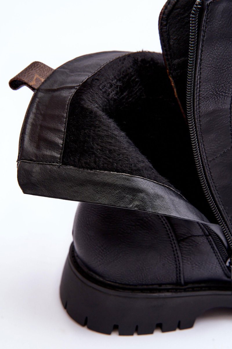 Черевики виготовлені з еко шкіри. Вони мають довгі шнурки, які можна зав'язати навколо верху. Чудова модель, яка додасть характеру вашому стилю! Черевики також мають блискавку для зручного надягання. Всередині вони утеплені м’якою ковдрою для взуття.