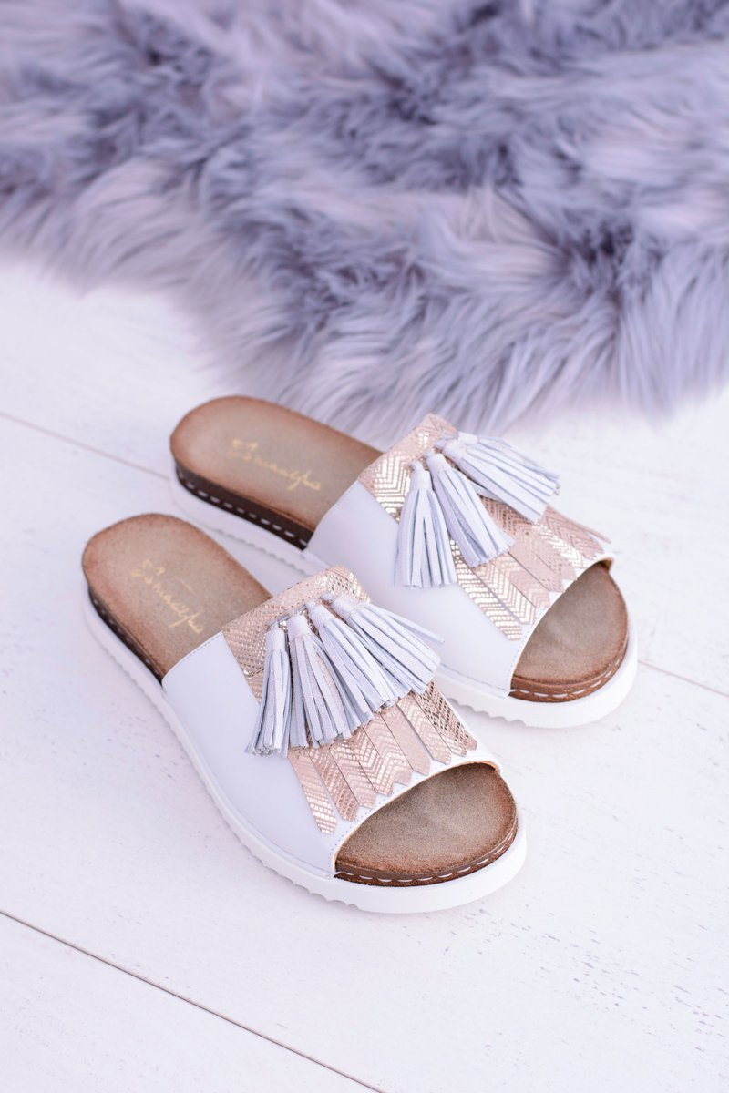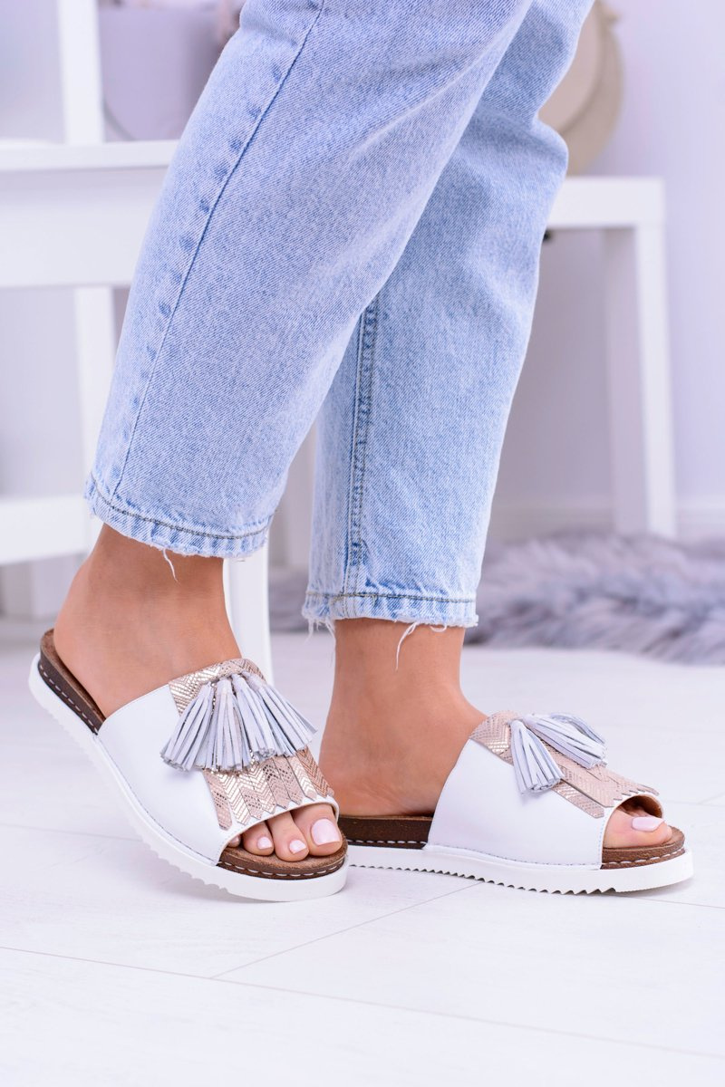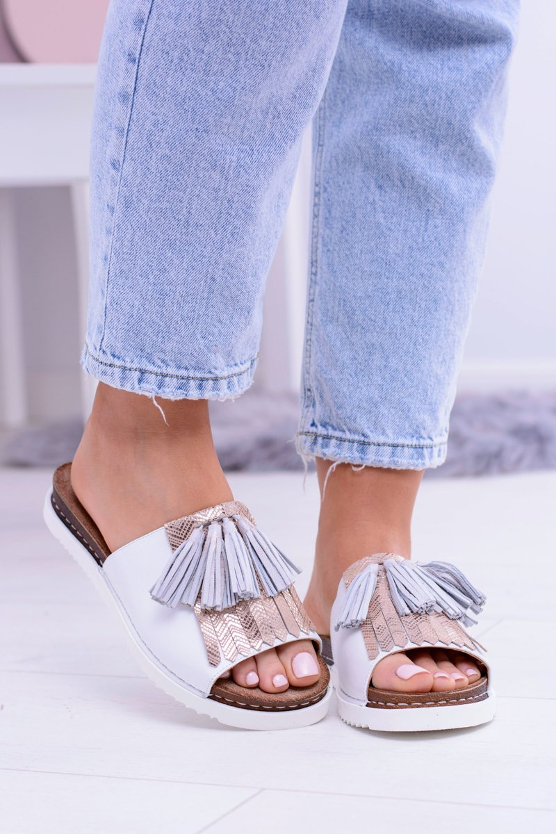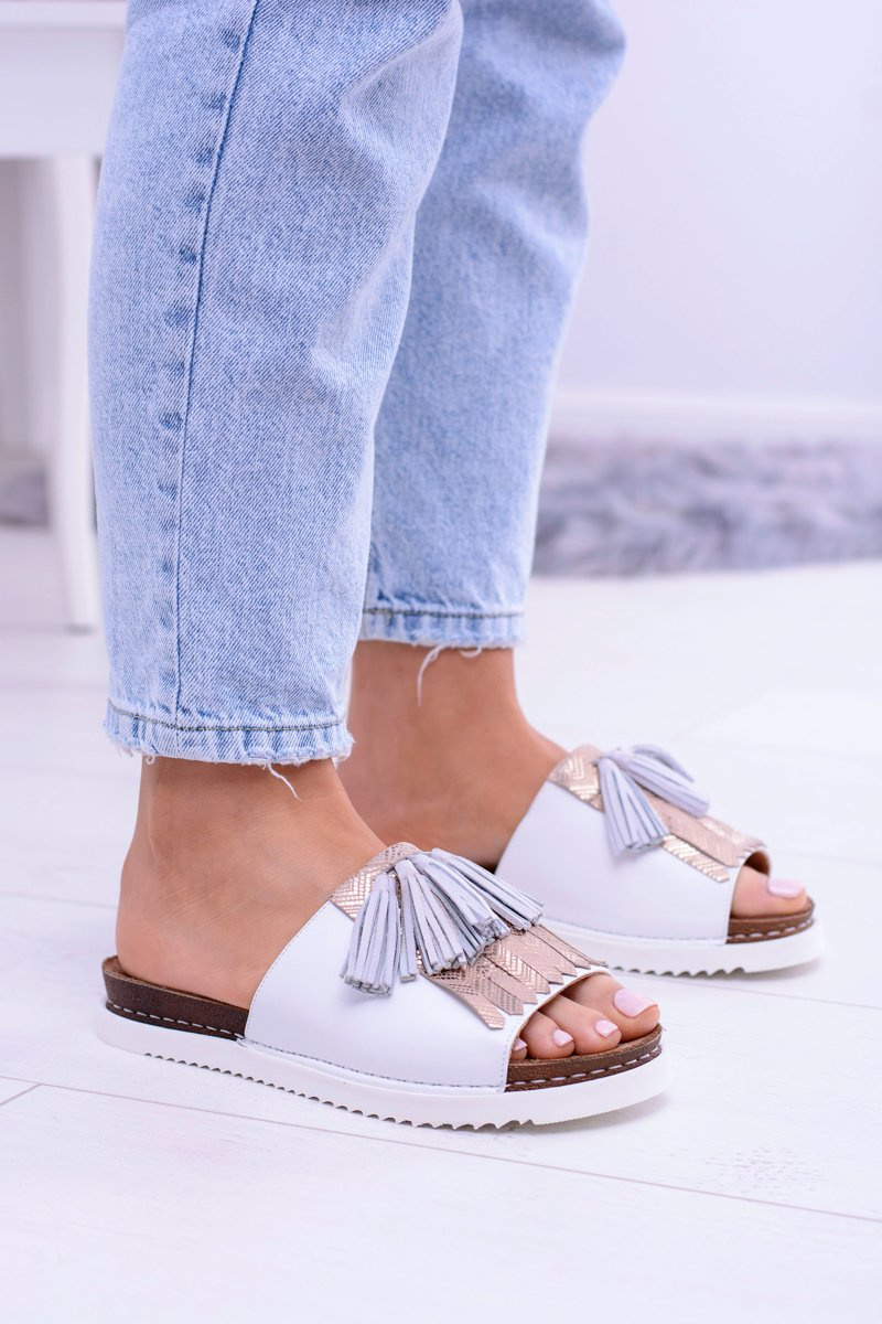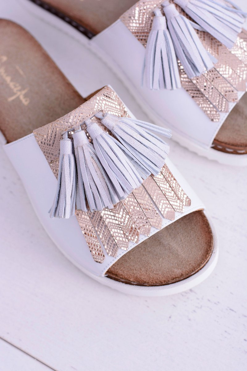 Шкіряні білі елегантні шльопанці Maciejka Resto