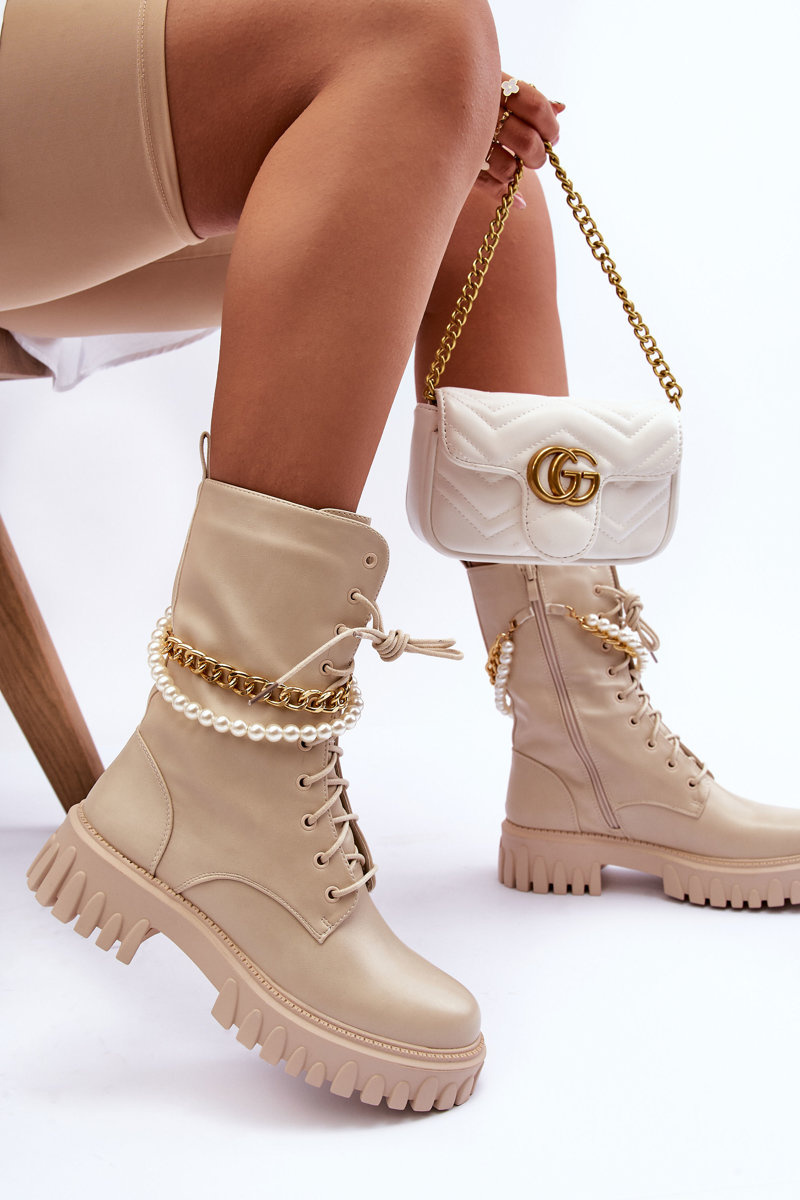 Шкіряні високі черевики з ланцюжком бежеві Nameer