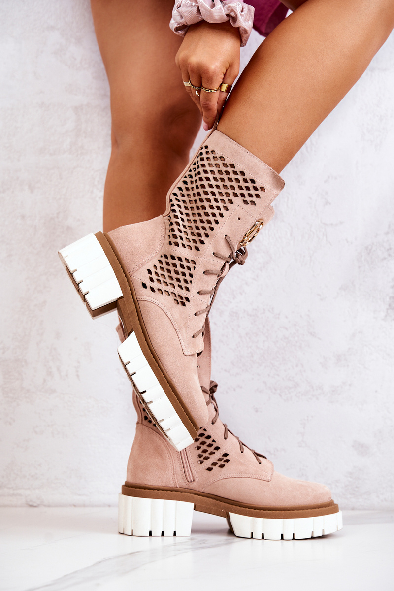 Шкіряні високі чоботи робочі Nicole Pink 2706