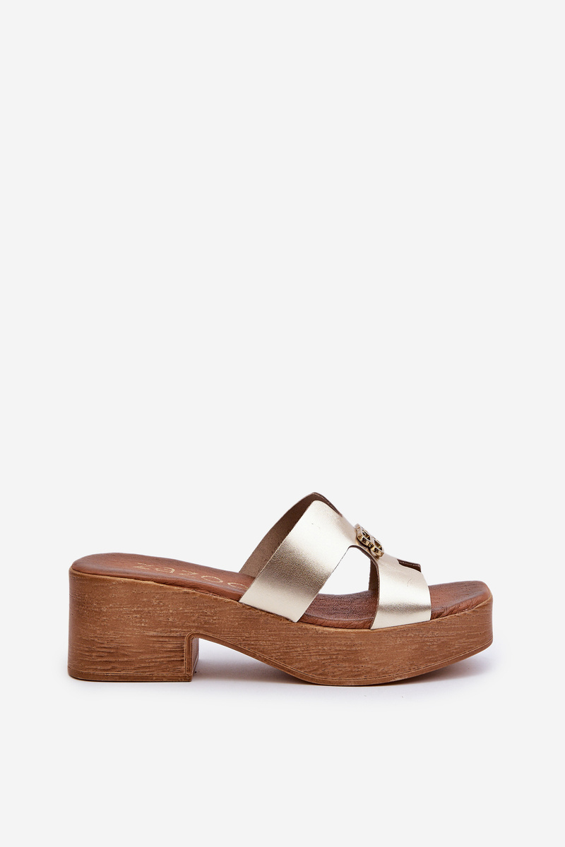 Шкіряні елегантні жіночі шльопанці з золотистим орнаментом Zazoo 40412