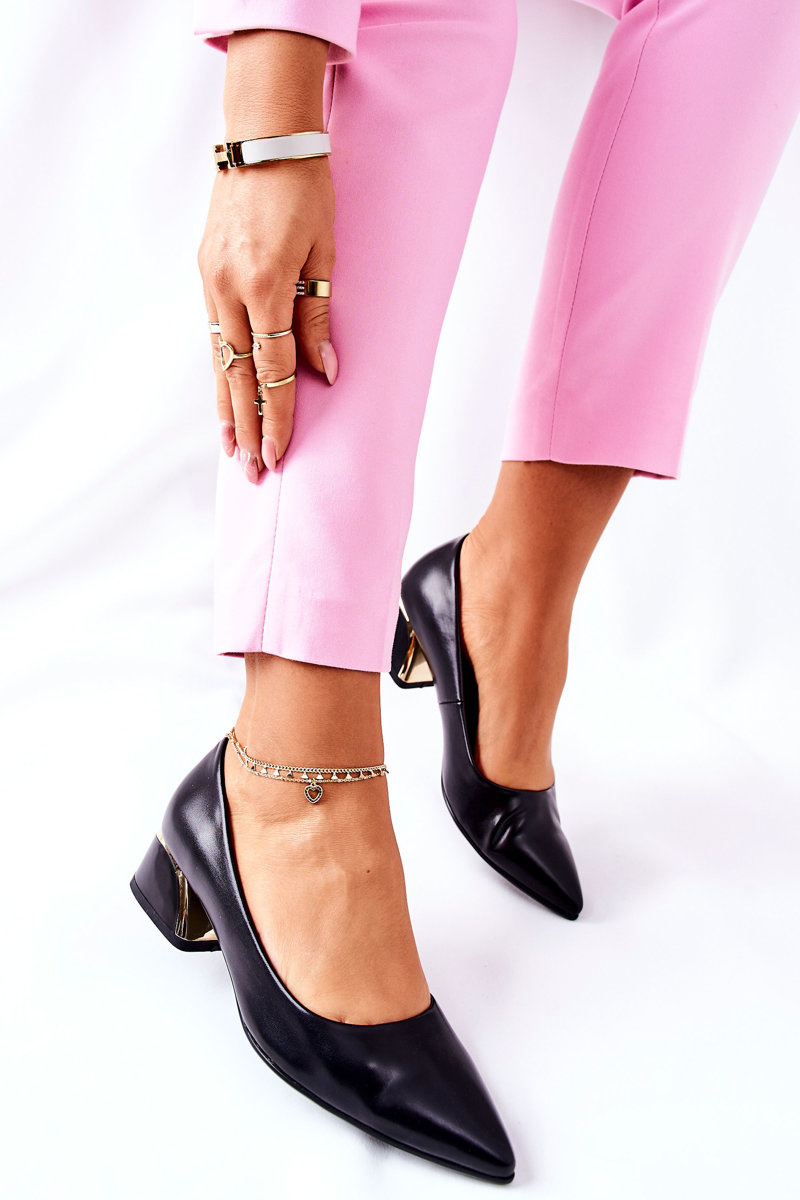 Взуття виготовлене з екологічної шкіри. Мають устілку з натуральної шкіри. Гладкі, елегантні човники підходять для багатьох випадків. Каблук оброблений декоративним елементом. Дуже зручна модель. Завдяки стійкому каблуку і м'якій устілці їх дуже зручно носити протягом багатьох годин. Обираючи розмір, зверніться до таблиці розмірів.