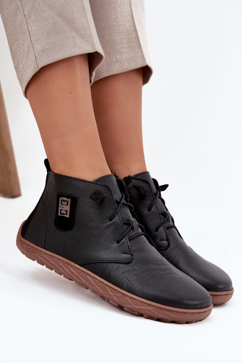 Шкіряні жіночі босоніжки Barefoot з декоративним елементом Zazoo 30072 Чорні