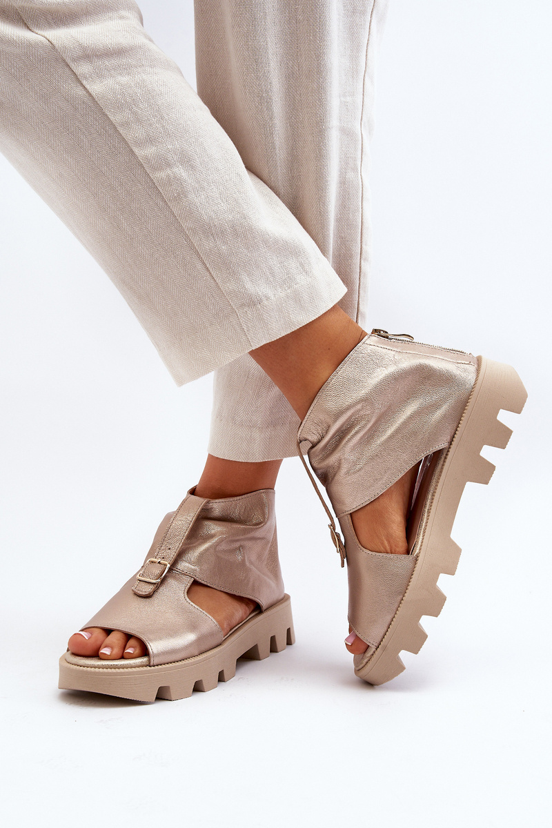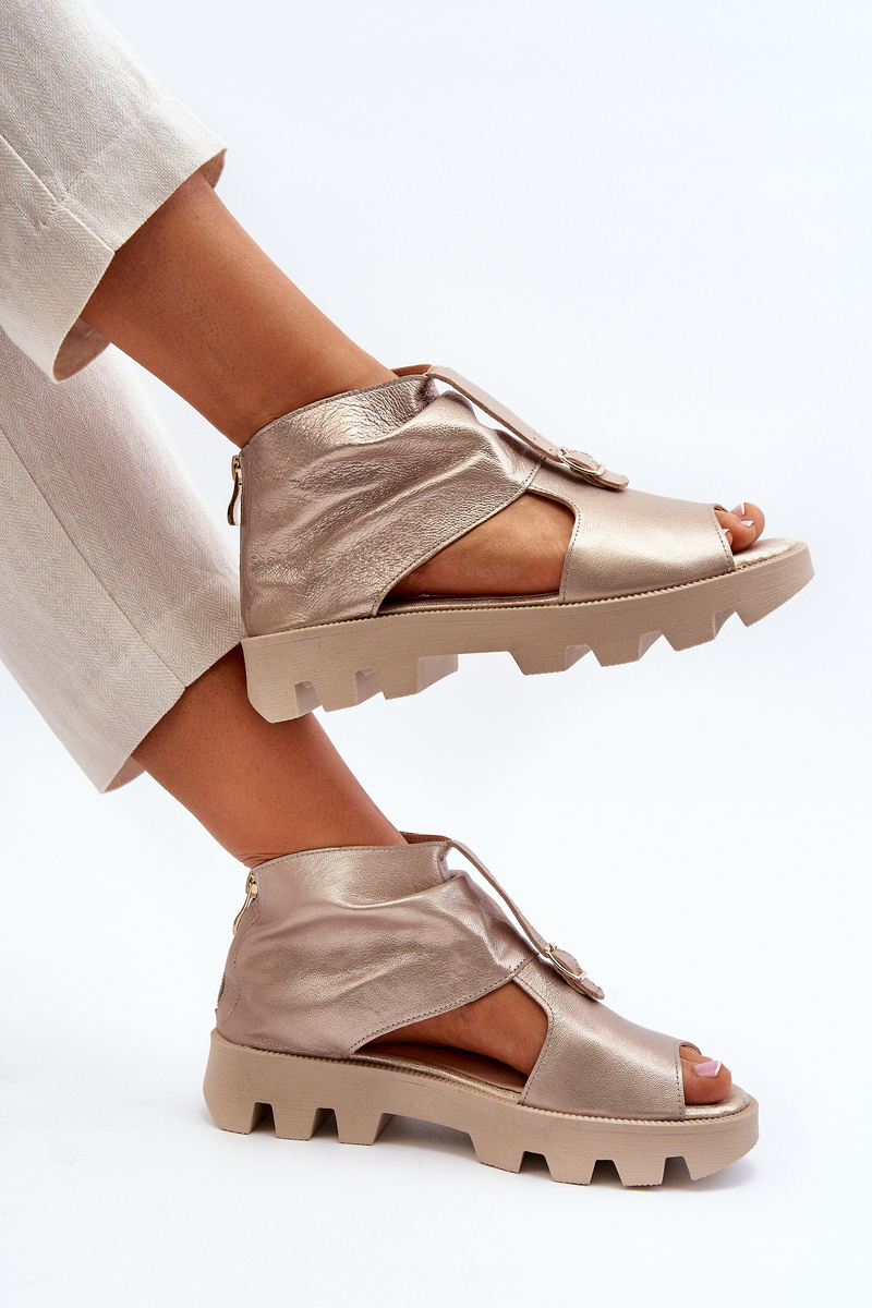 Шкіряні жіночі босоніжки Zazoo 999 із золотою блискавкою