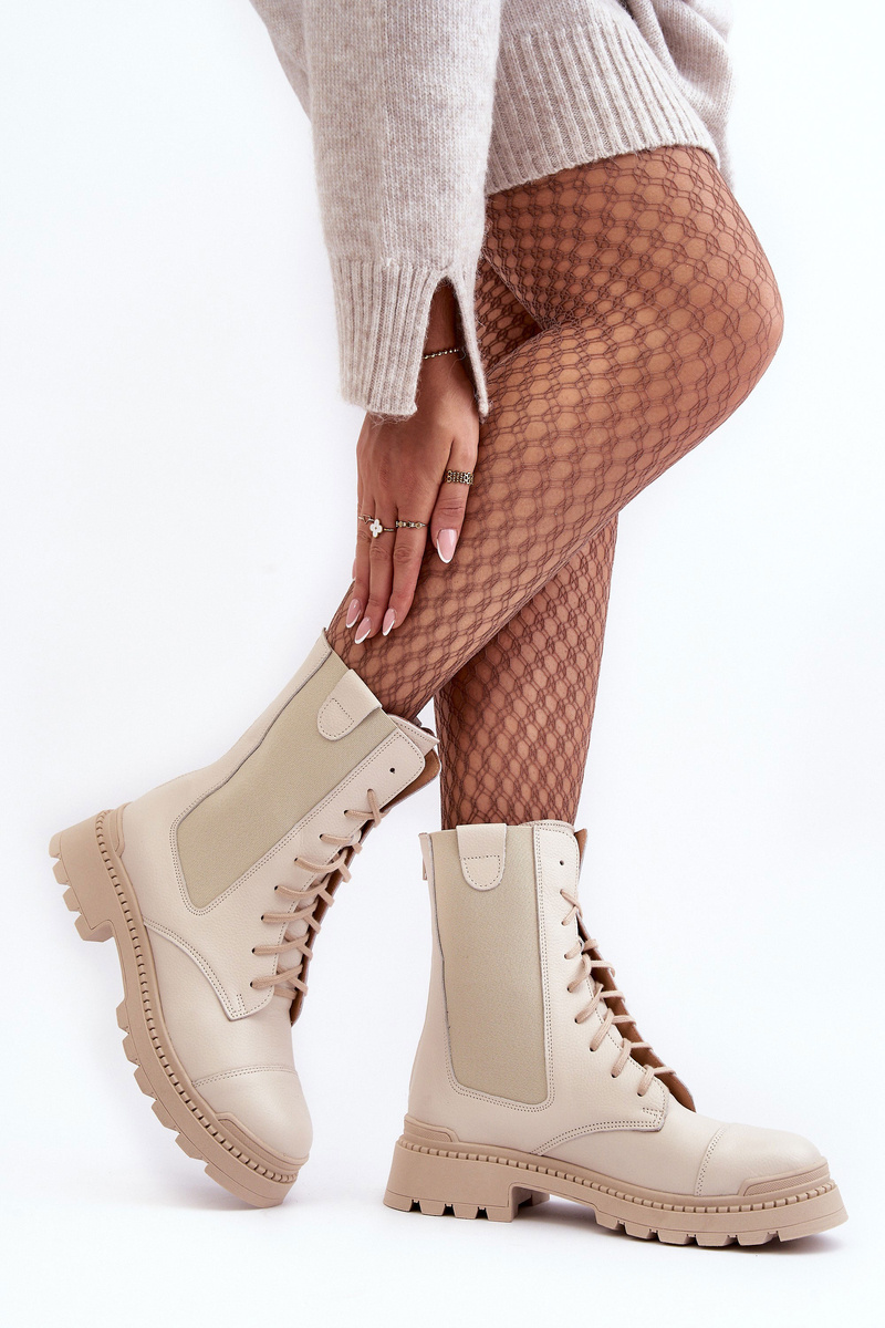 Шкіряні жіночі ботильйони на шнурівці бежеві Nicole 2836