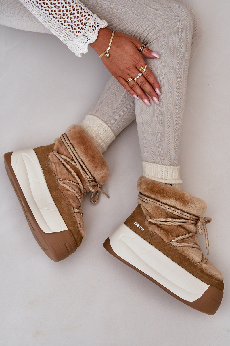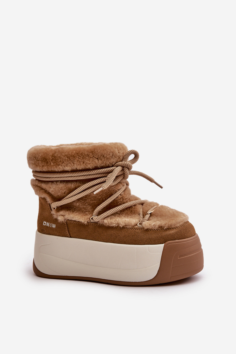 Шкіряні жіночі зимові черевики на товстій підошві з хутром Big Star OO274A207 Коричневий