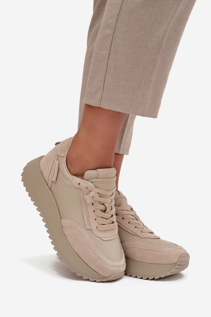 Шкіряні жіночі кросівки на платформі Artiker 55C0021 бежеві