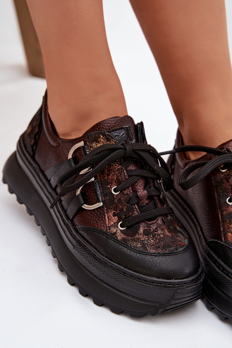 Шкіряні жіночі кросівки на платформі Maciejka 06562-25 шоколадні