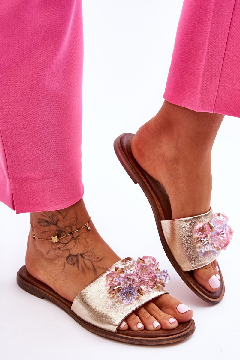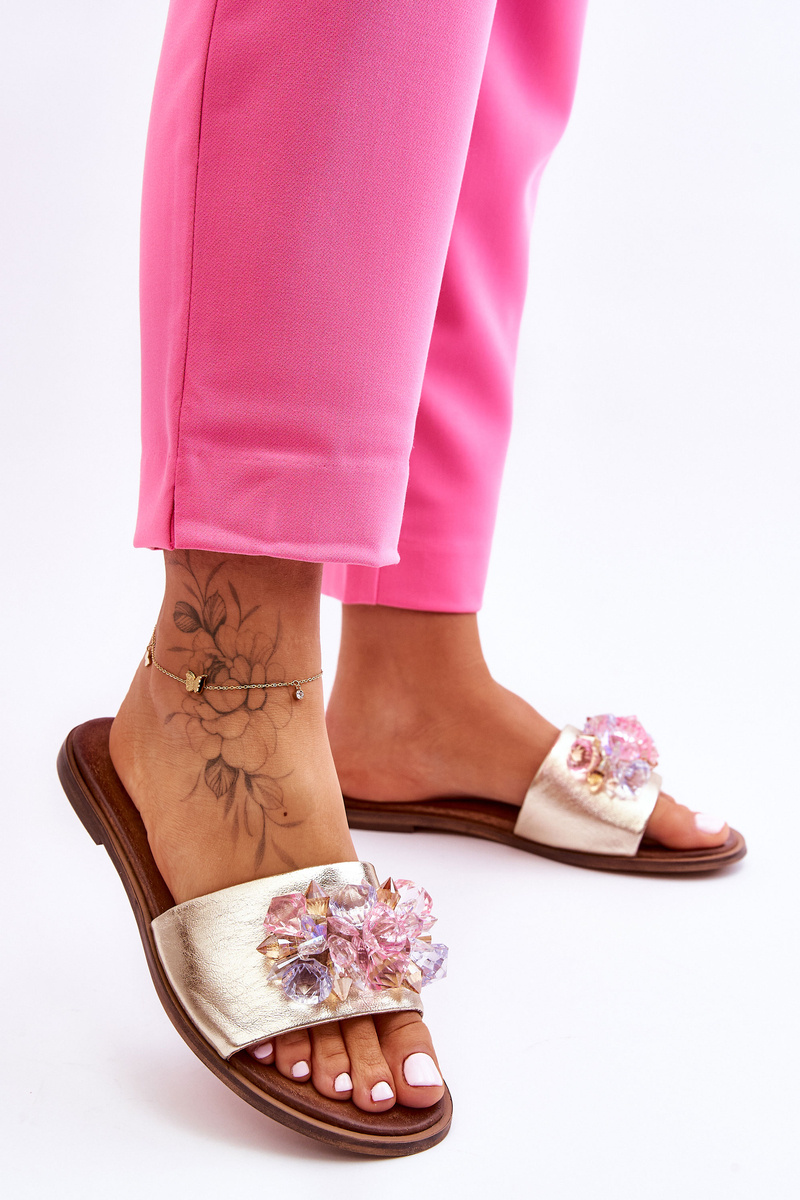 Шкіряні жіночі тапочки з декором Nicole 2726/064 Золотий