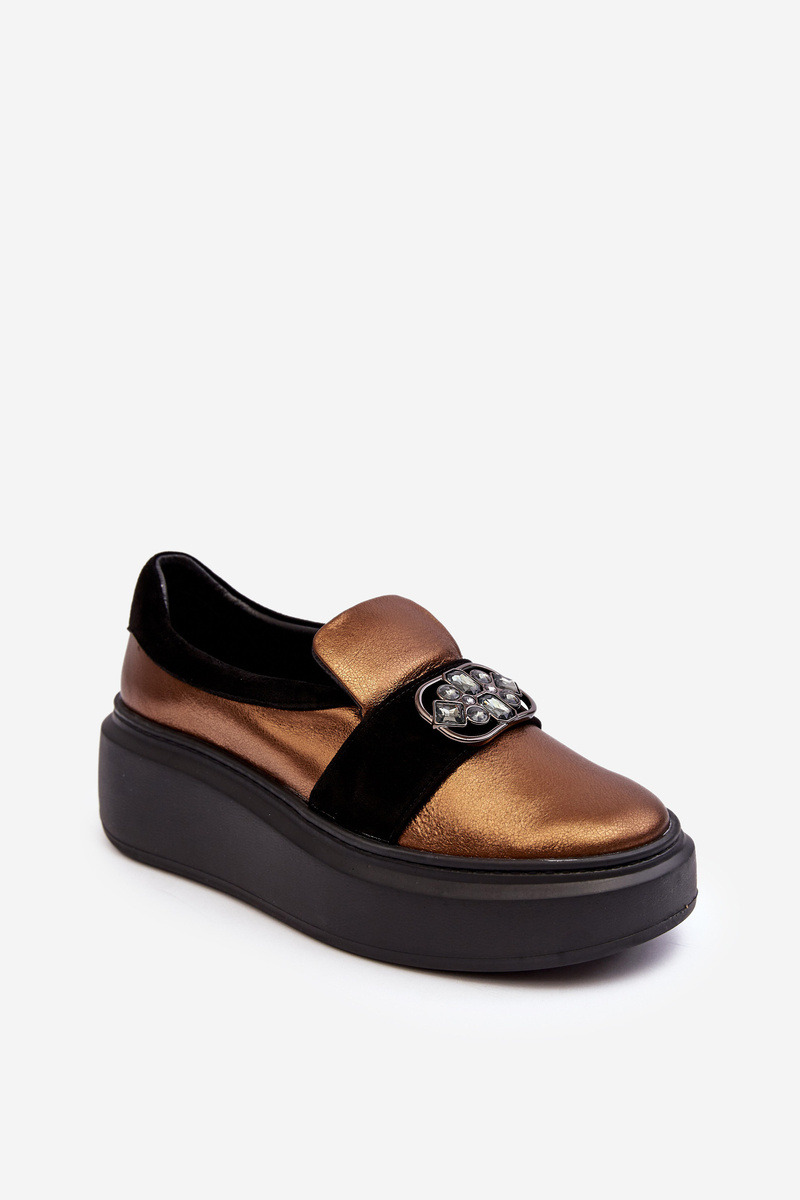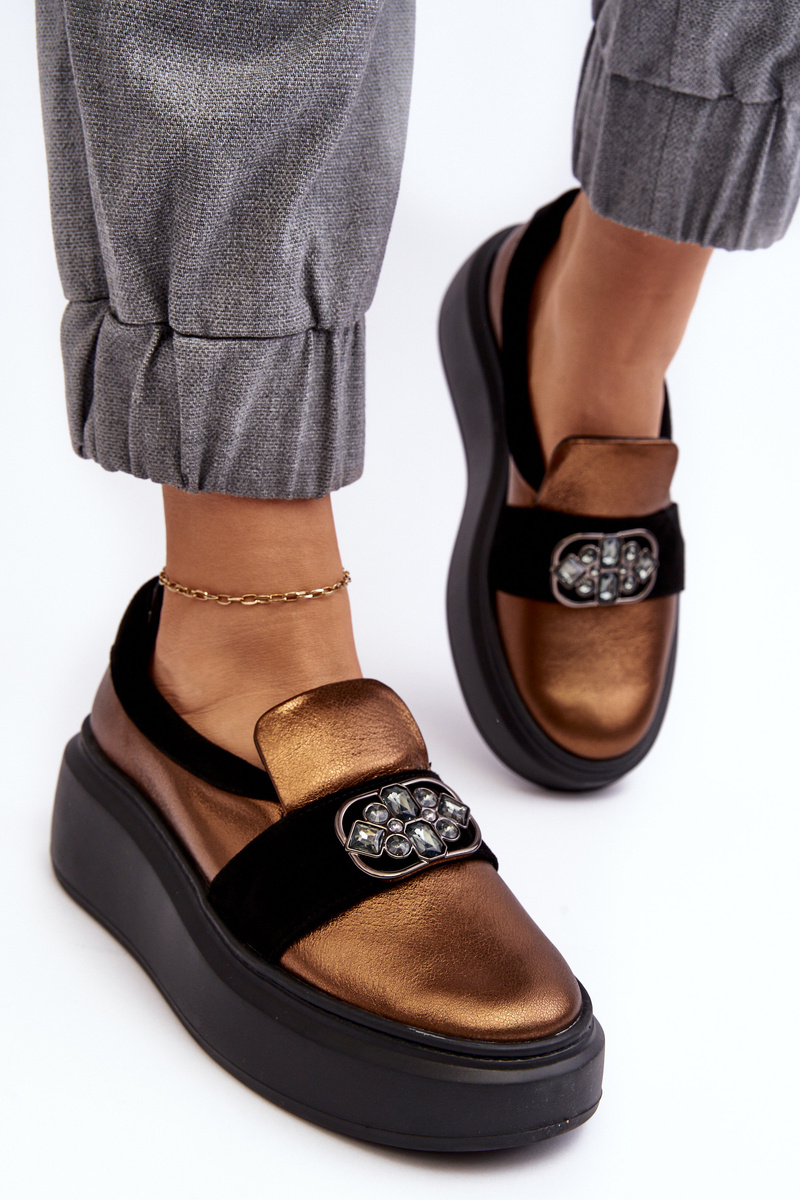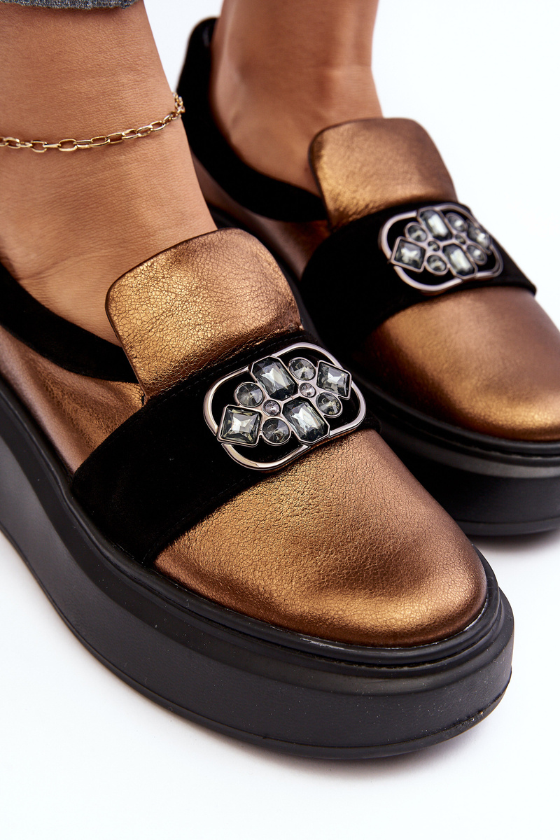 Шкіряні жіночі туфлі на платформі з орнаментом Laura Messi 2697/744-300 золото