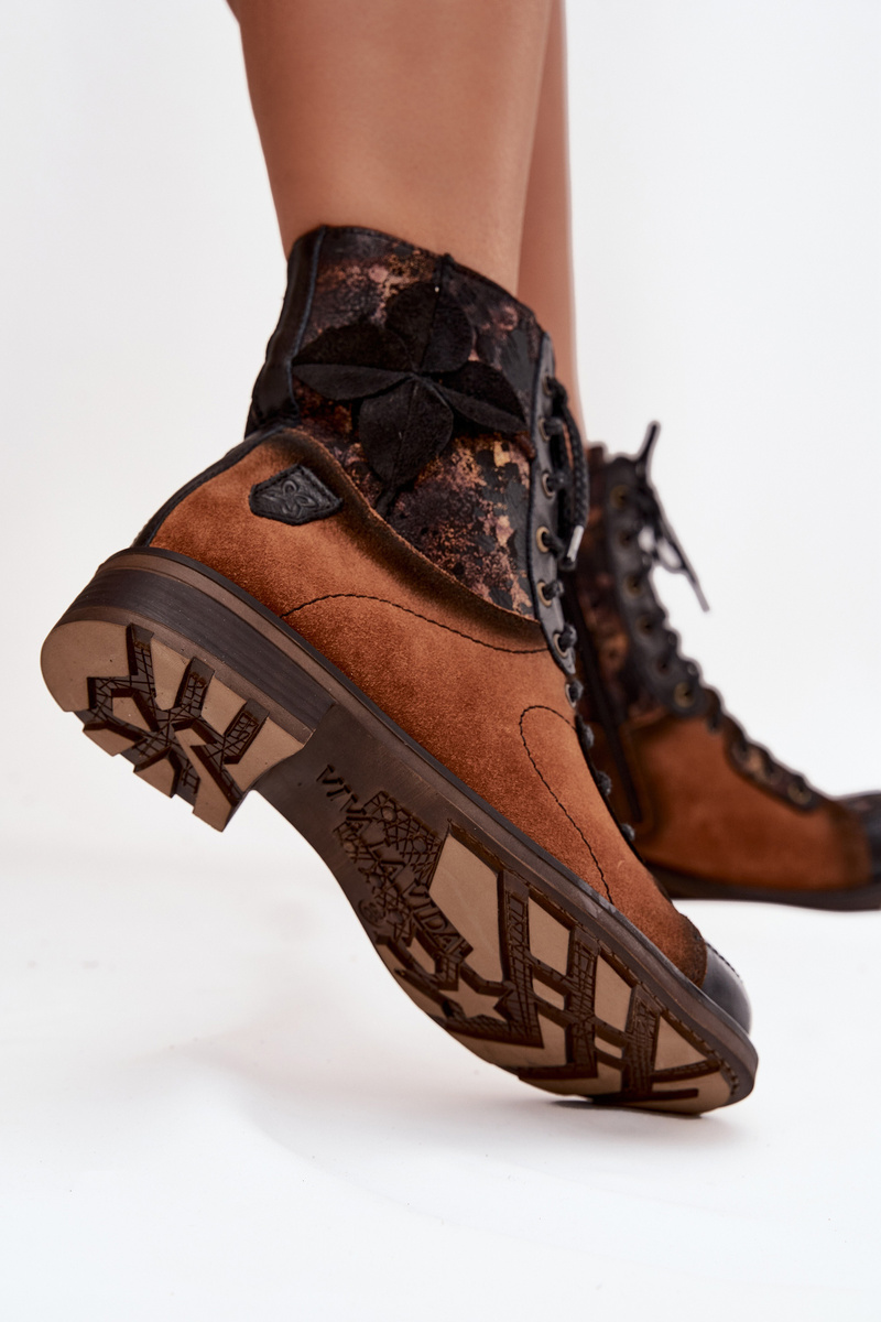 Жіночі ботінки марки Maciejka — це унікальна пропозиція для жінок, які цінують комфорт і неповторний стиль. Виготовлені з натуральної шкіри, вони вражають оригінальним виглядом, а декоративний квітка, розміщена збоку верху, надає їм делікатного, жіночого характеру. Модель встановлена на плоскому каблуці, що гарантує комфорт щоденного носіння. Поєднання шнурівки та практичного замка робить взуття легким у підгонці до ноги та зручним у взуванні. Внутрішня частина обшита м'яким матеріалом, що забезпечує тепло в холодні дні. Це ботінки, які ідеально підходять для осінньо-зимового сезону. При виборі розміру, будь ласка, орієнтуйтеся на таблицю розмірів. Будь ласка, зверніться до розмірної сітки при виборі розміру.