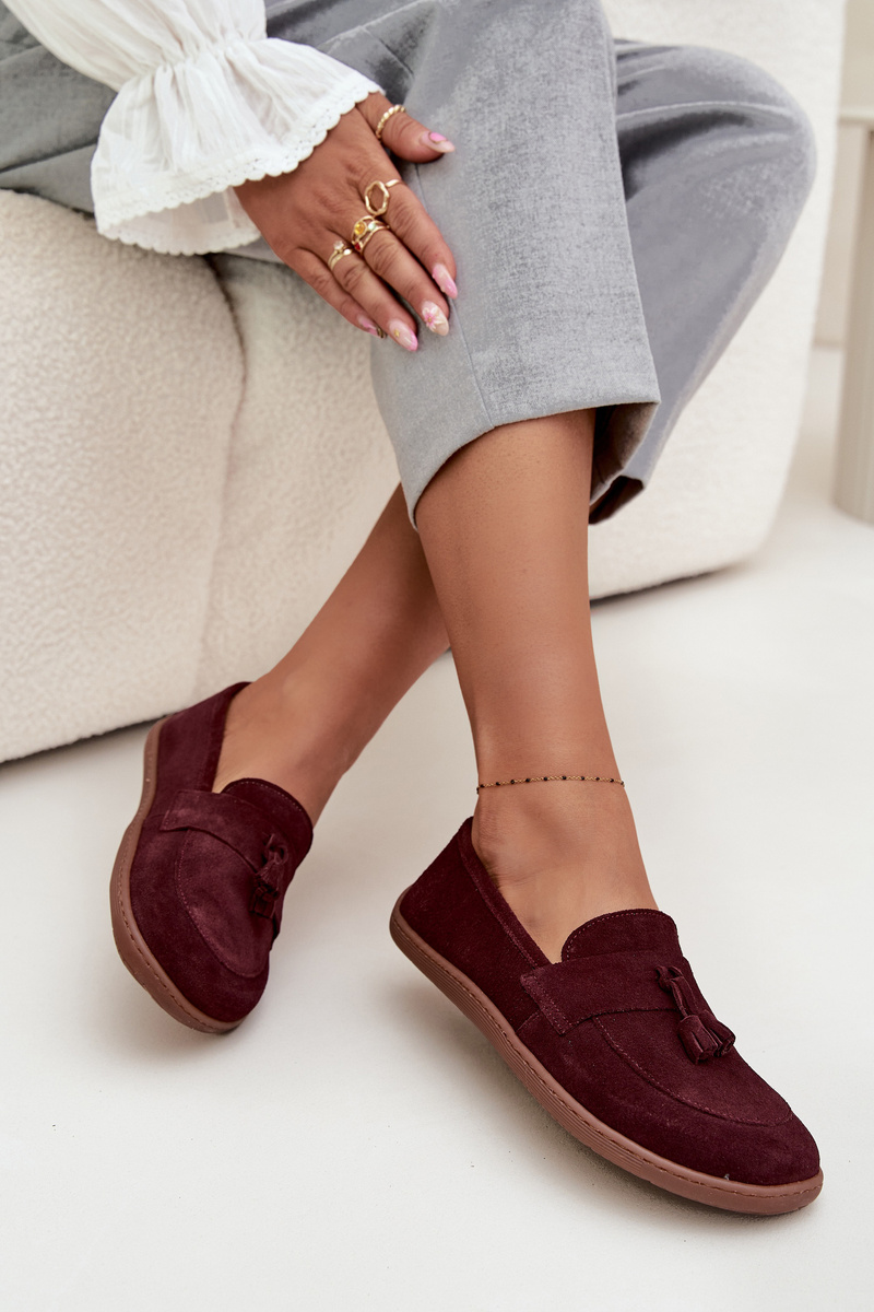 Шкіряні замшеві мокасини типу barefoot Zazoo 322 бордові