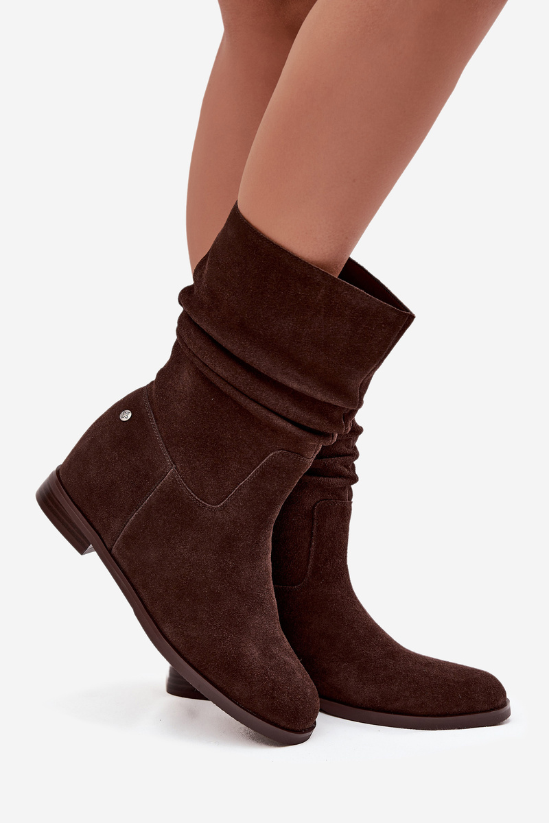 Шкіряні замшеві черевики для жінок утеплені Maciejka K7211-02 шоколадні
