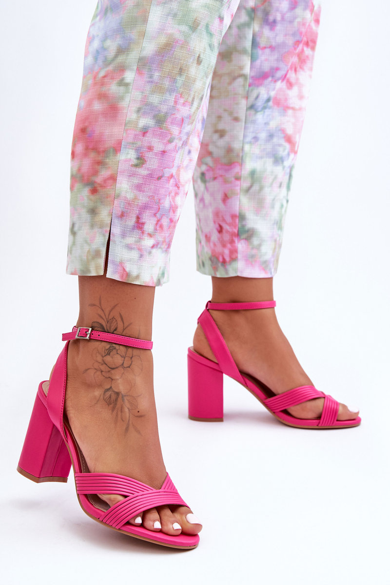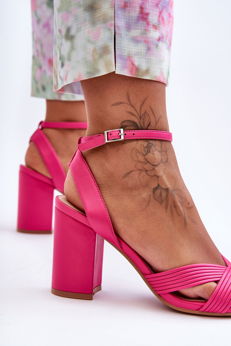 Шкіряні класичні босоніжки на каблуці фуксія Zipola
