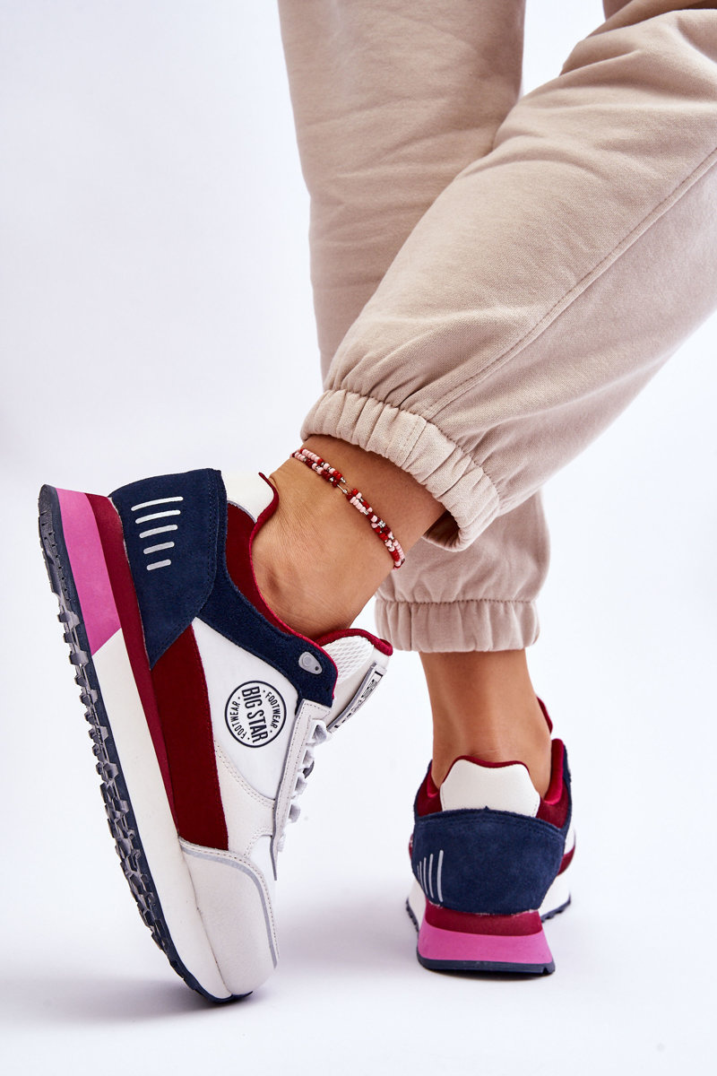 Чудові жіночі кросівки від бренду Big Star виготовлені з поєднання текстилю, натуральної замші та еко шкіри. Таке взуття розміщується на платформі з неслизькою підошвою. Устілка Memory Foam System запам'ятовує форму стопи, забезпечує ідеальну посадку, амортизує удари, стійка до деформації і дозволяє випаровувати вологу і регулювати температуру. Крім того, вони мають посилений каблук. Обираючи розмір, орієнтуйтеся на таблицю розмірів.