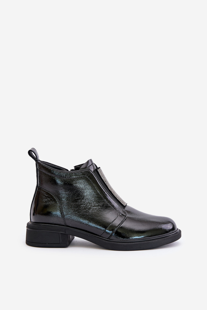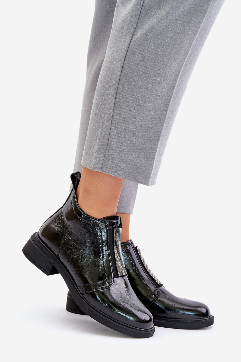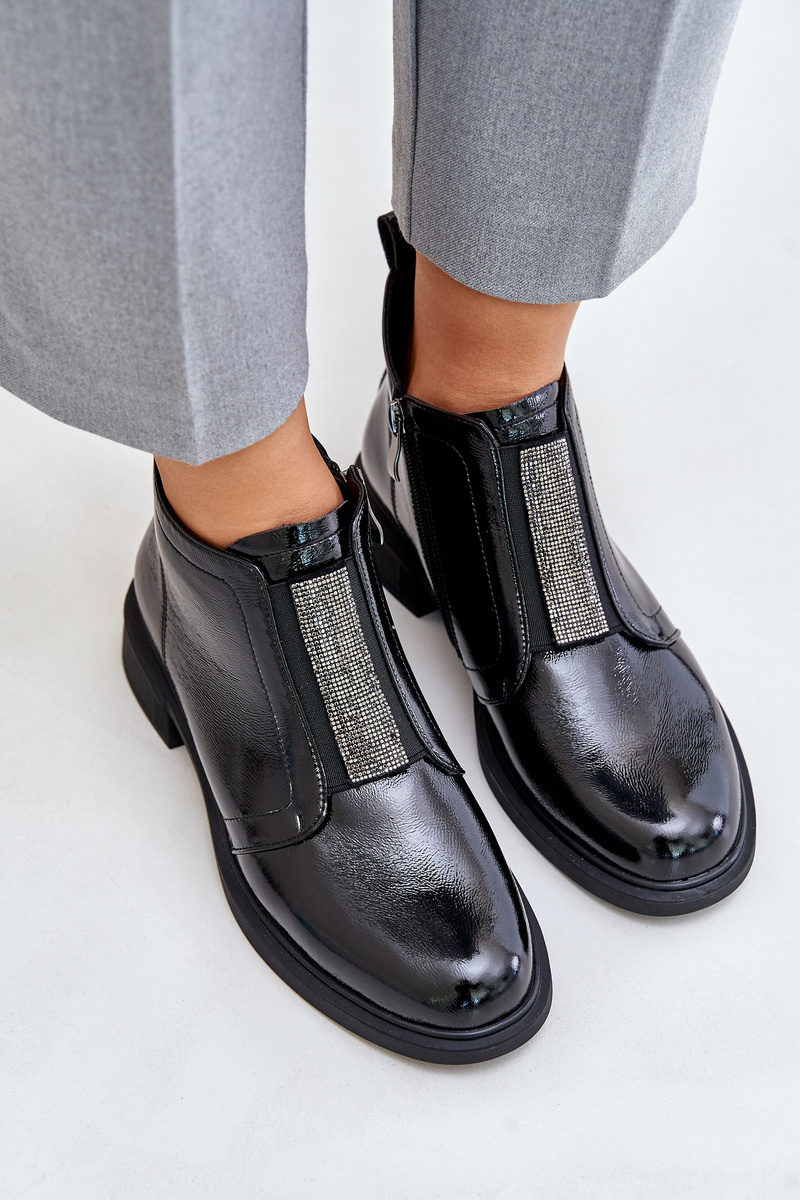 Шкіряні лаковані низькі ботильйони з прикрасою на блискавці D&A MR880-142 Чорні