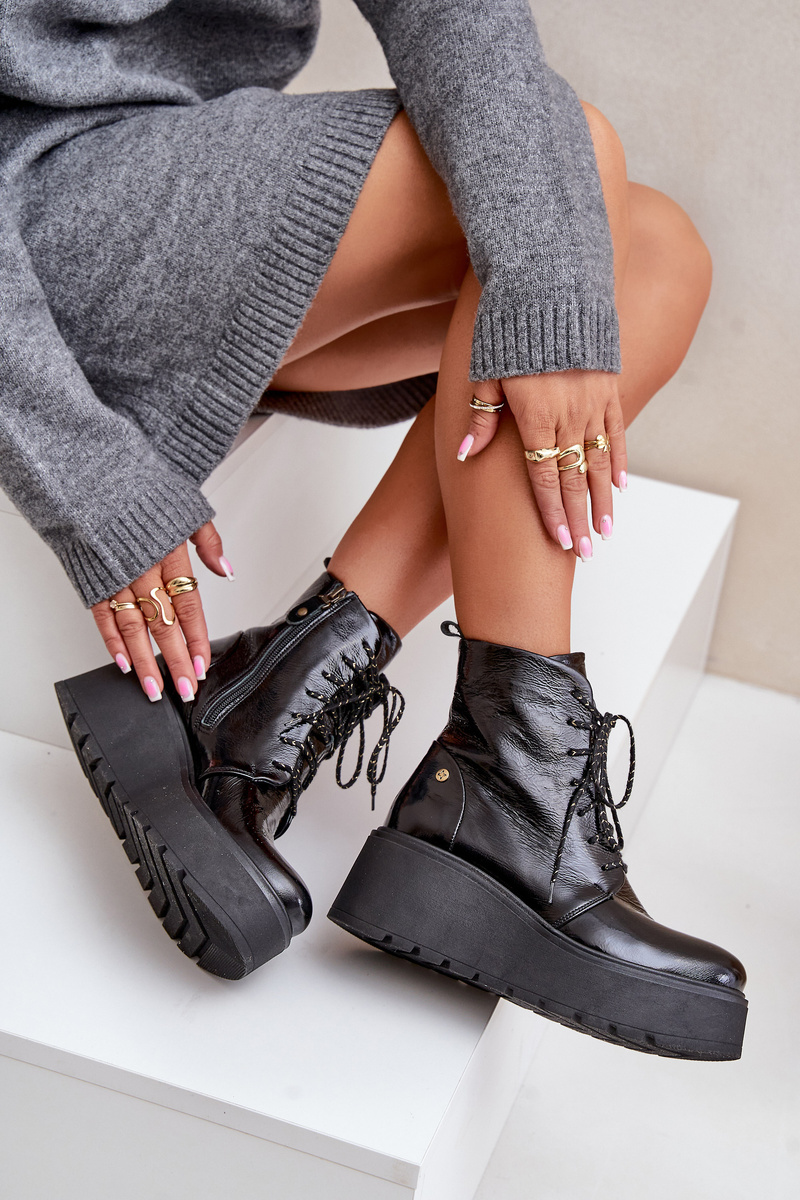Шкіряні лакові ботильйони на платформі та танкетці Maciejka 06762-01 Чорні