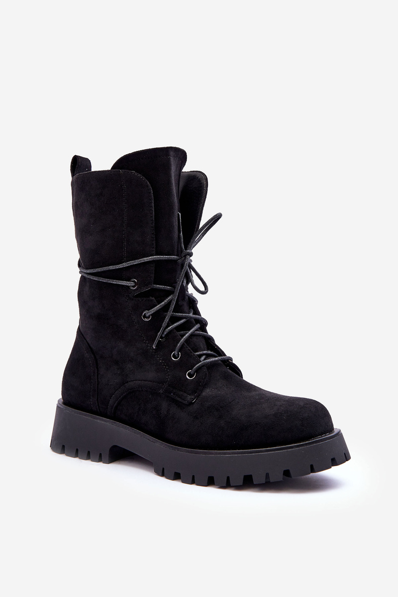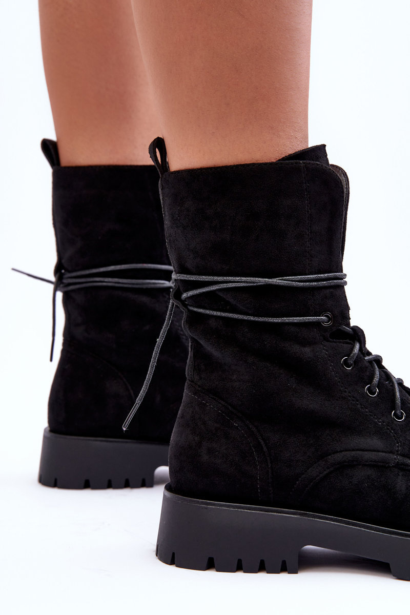 Жіночі модні ботильйони виготовлені з м'якої еко замші. Комплект на плоскій каблуці і платформі. Устілка з м'якого матеріалу забезпечує комфортне використання взуття. Черевики мають посилений носок. Ідеальна модель для осіннього стилю! При виборі розміру орієнтуйтеся на таблицю розмірів.