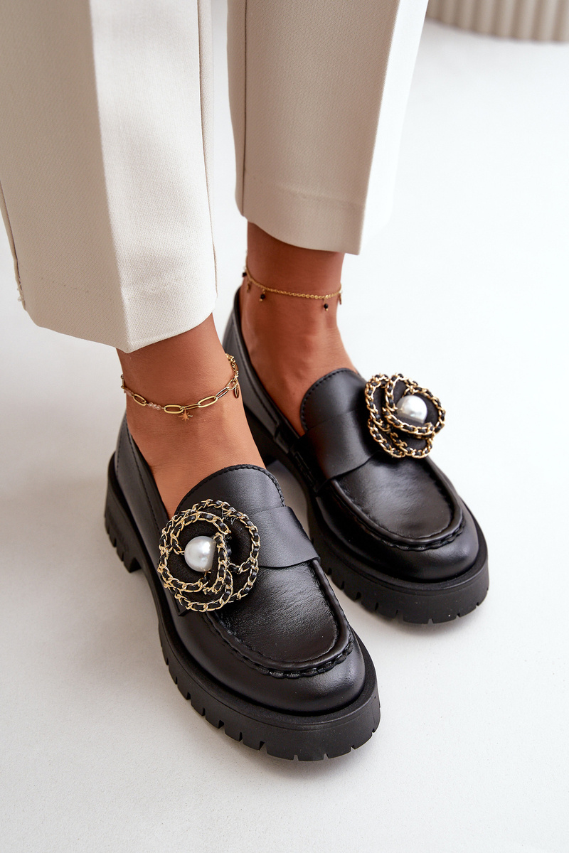 Красиві жіночі мокасини з високоякісної натуральної шкіри, що забезпечує довговічність і комфорт під час носіння. Плоский каблук і платформа забезпечують стабільність і комфорт. Шкіряна устілка додатково підвищує комфорт носіння. Декоративна квітка на ремінці додає тонкий акцент. Ця модель чудово доповнює багато образів! Обираючи розмір, орієнтуйтеся на таблицю розмірів.