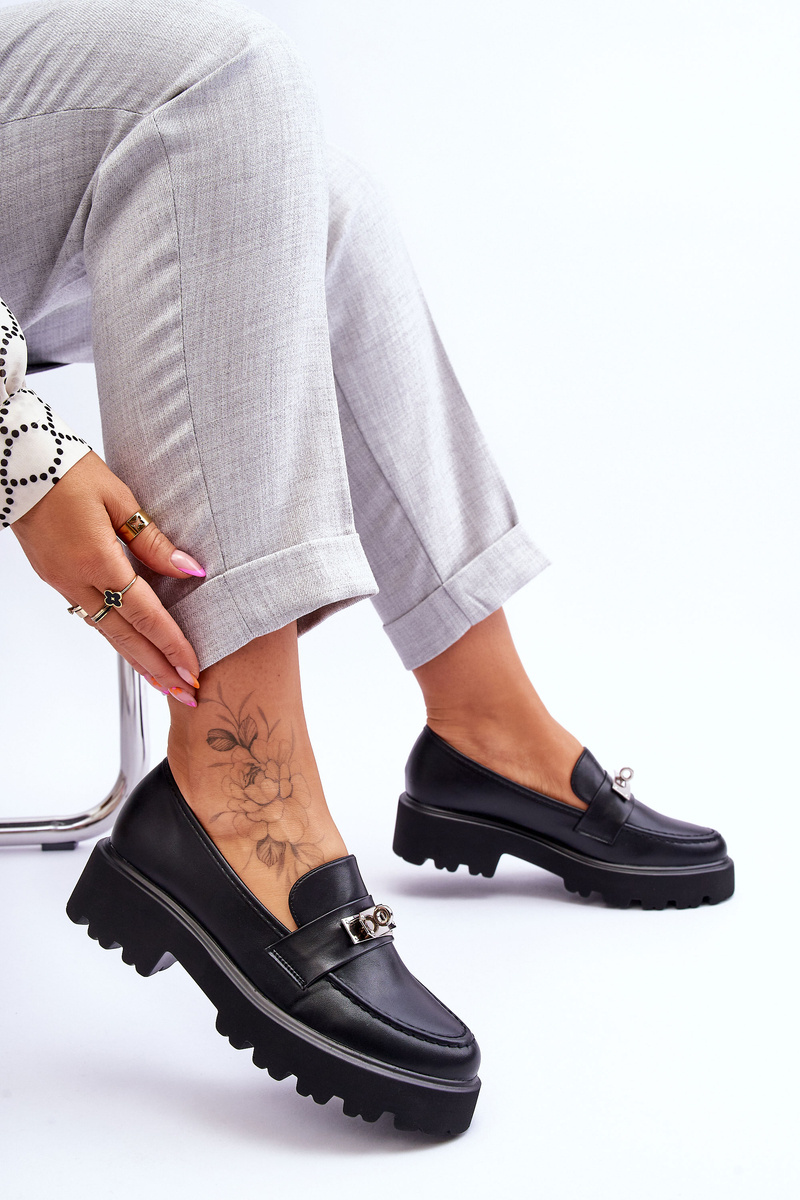 Жіночі лофери виготовлені з еко шкіри. Вони встановлювалися на платформу і плоский каблук з виїмками. Підошва виготовлена з пластику. М'яка устілка з еко шкіри забезпечить комфортне використання. Лофери мають декоративний елемент спереду. Чудова модель для багатьох елегантних і повсякденних стилізацій. При виборі розміру орієнтуйтеся на таблицю розмірів.