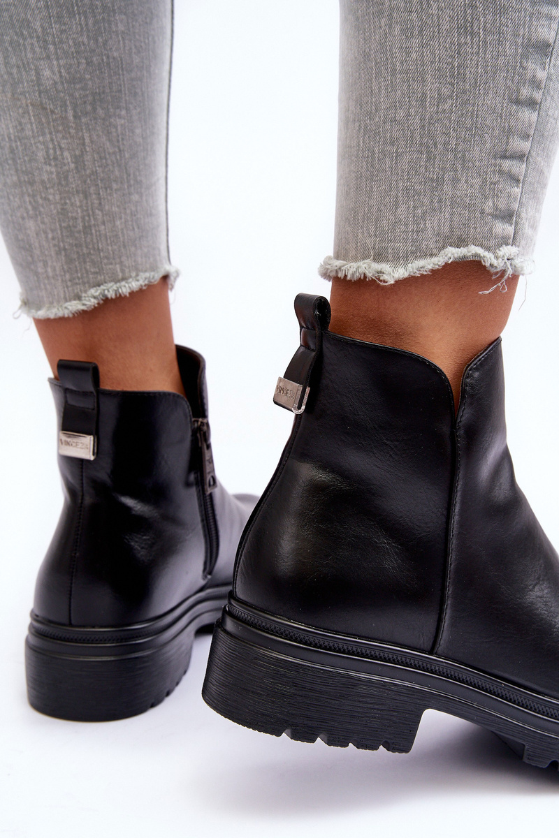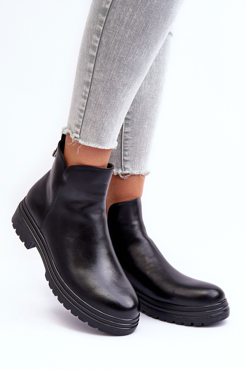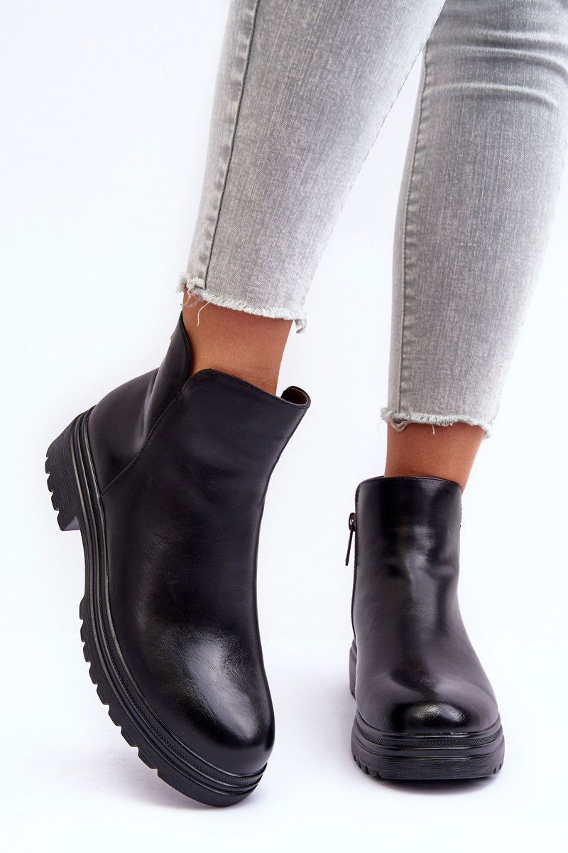 Класичні жіночі ботильйони на низькому ходу. Комплект на платформі і плоскому, стійкому каблуці. Модель із заокругленим носком. Виготовлена з еко шкіри. Салон утеплений взуттєвою ковдрою. Крім того, п'ята посилена. Черевики застібаються на блискавку з внутрішньої сторони халяви. При виборі розміру орієнтуйтеся на таблицю розмірів.