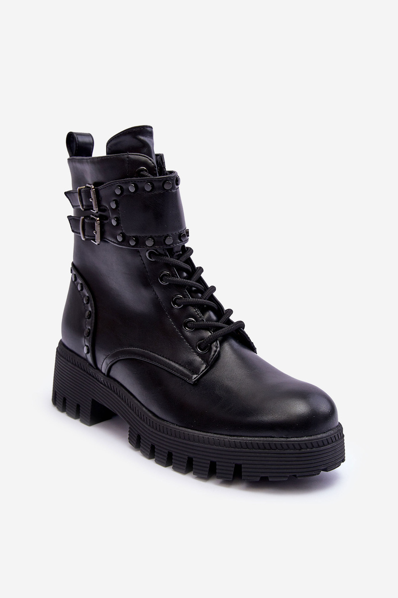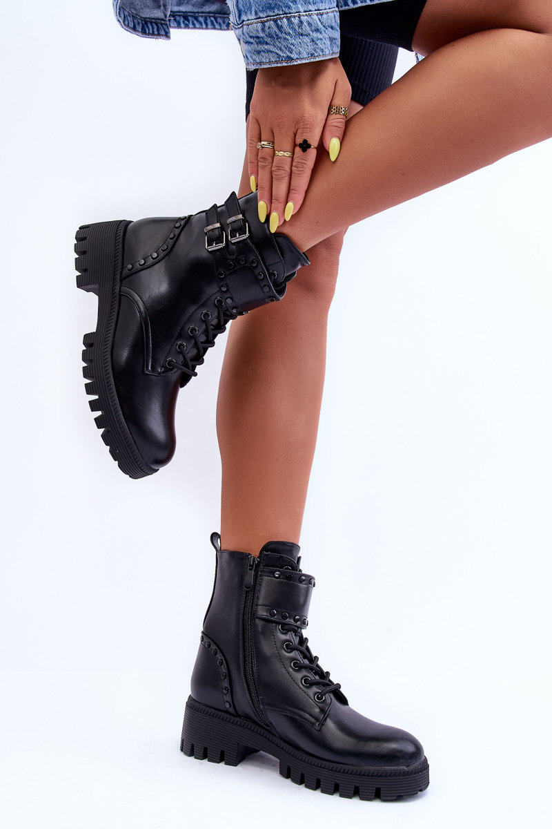 Шкіряні оздоблені чоботи Worker Black Carshena