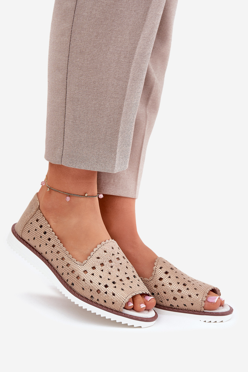 Жіночі балетні туфлі, виготовлені з натуральної шкіри. Установлені на ніжній платформі, забезпечують комфорт протягом усього дня. Модель з відкритими носками. Перфорований візерунок надає виняткового шарму та легкості. Шкіряна устілка дбає про правильну амортизацію та комфорт під час носіння. Ці балетні туфлі стануть відмінним вибором як для елегантних, так і для повсякденних стилізацій. Будь ласка, зверніться до розмірної сітки при виборі розміру.
