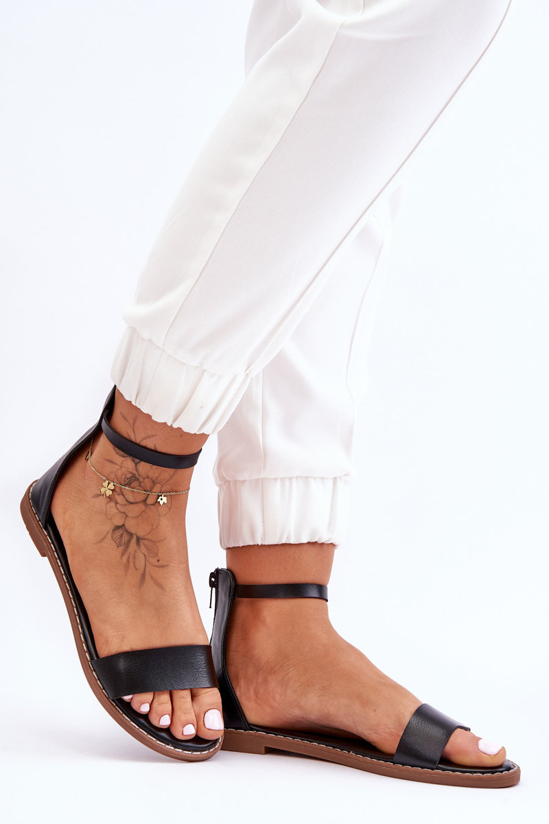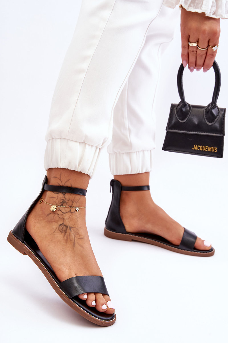 Шкіряні плоскі сандалі на блискавці Black Millou