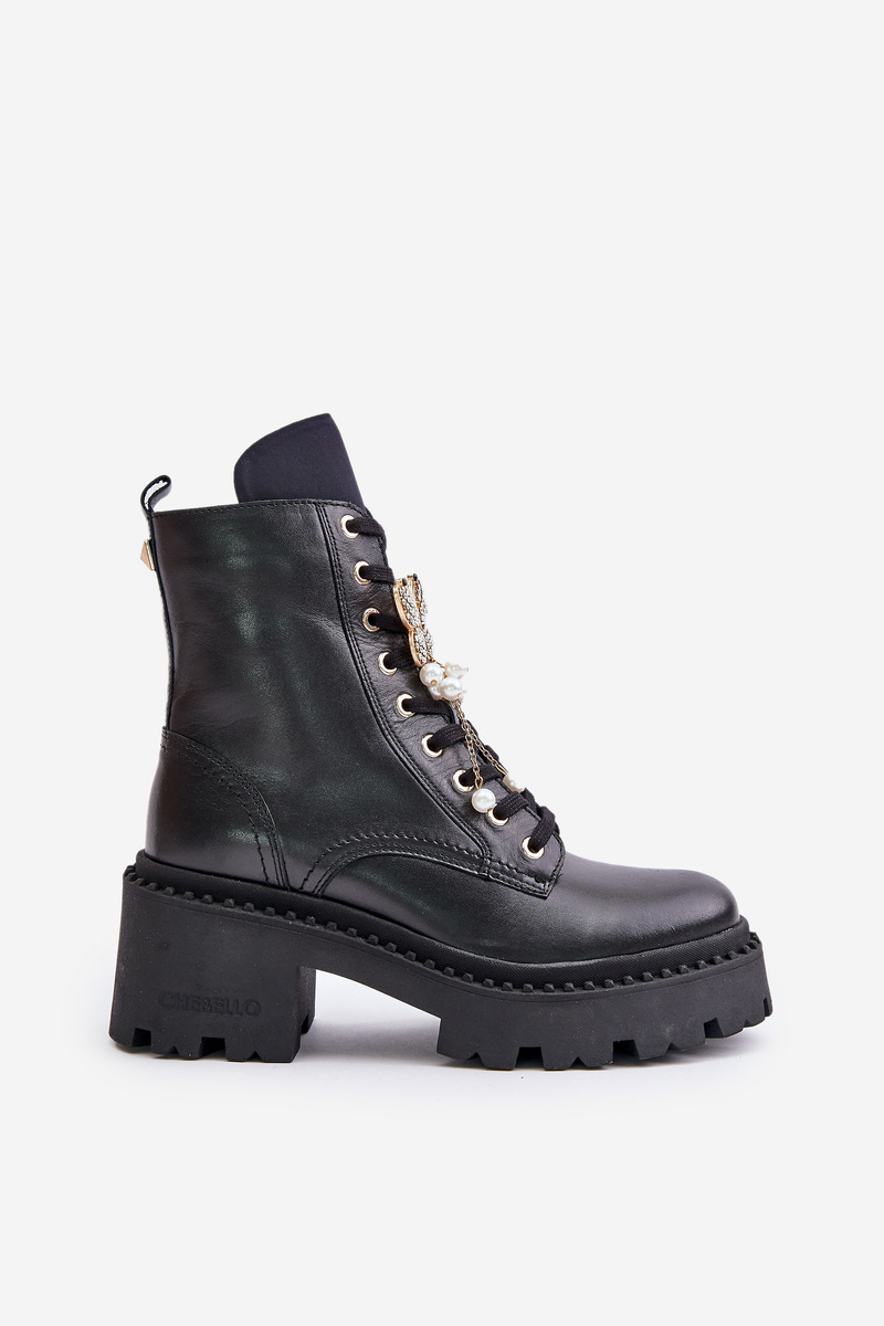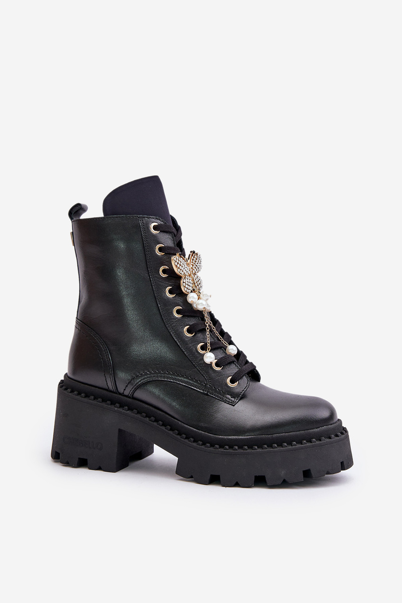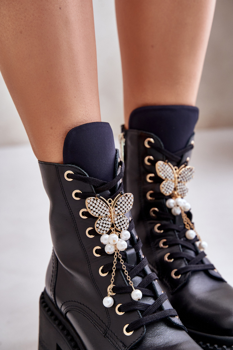 Шкіряні робочі ботильйони жіночі з метеликом чорні CheBello 4590