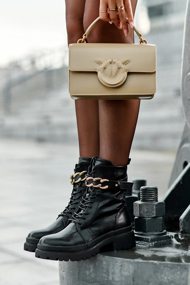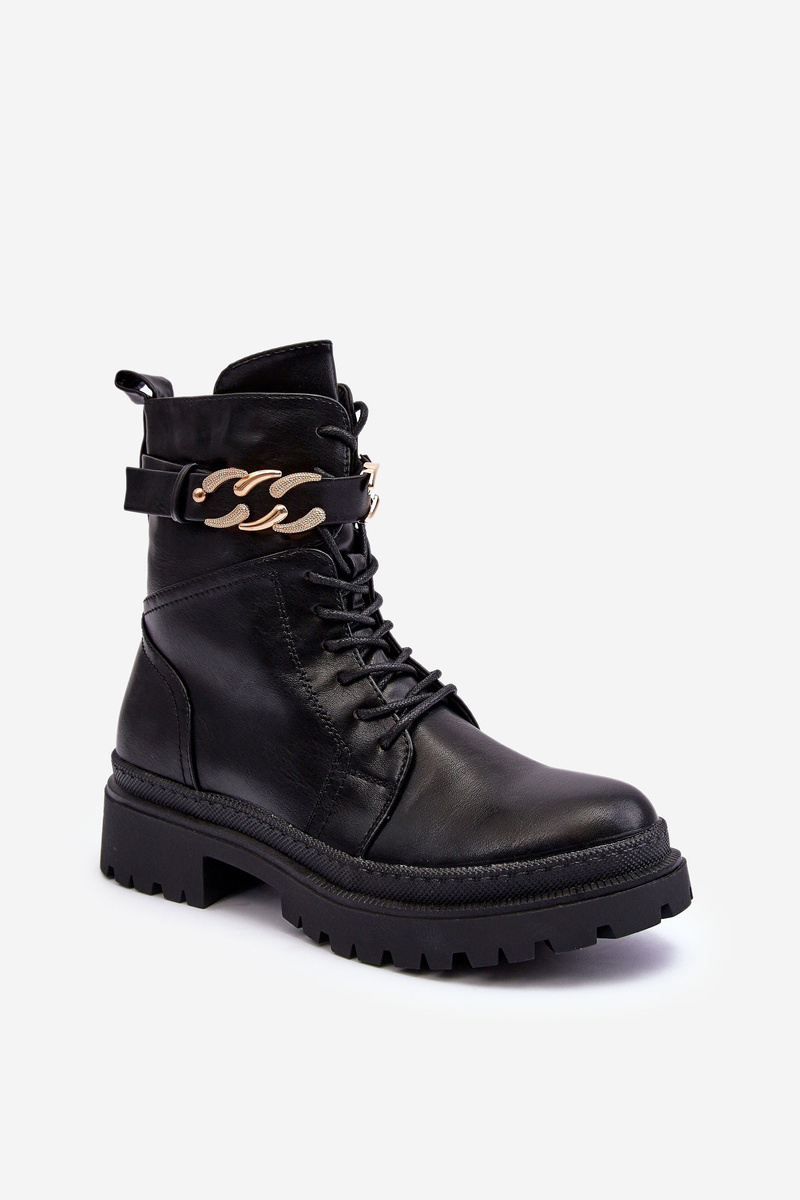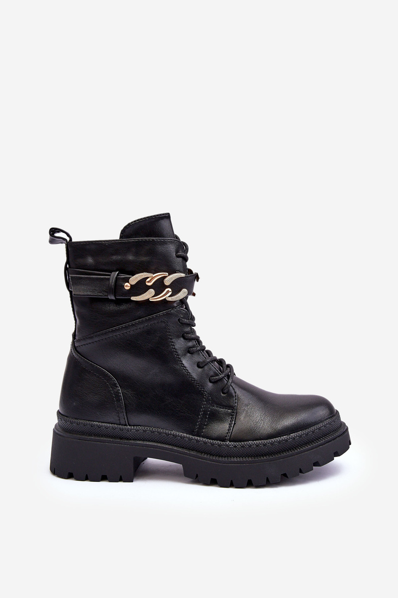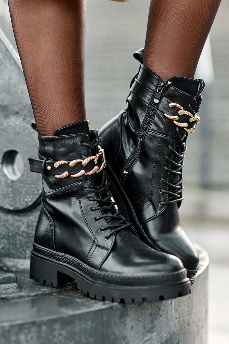 Шкіряні робочі черевики з декоративним поясом Black Enili