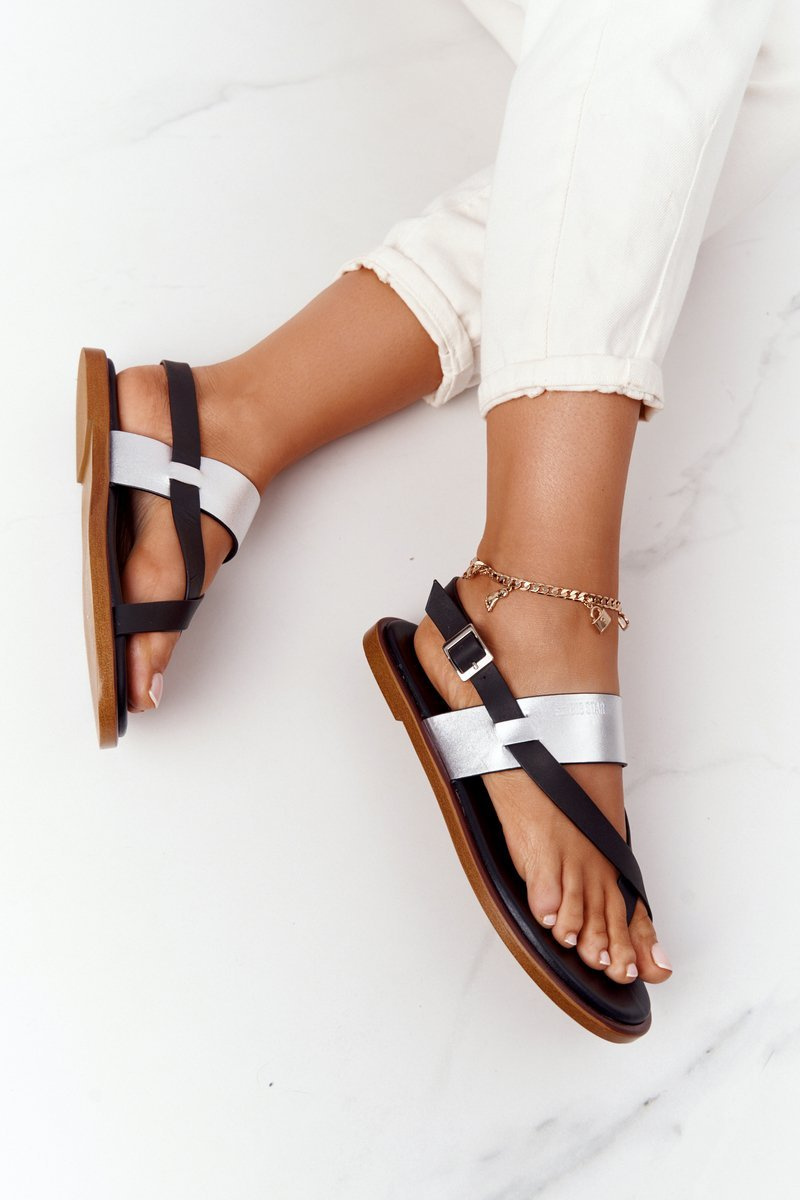 Шкіряні сандалі В'єтнамки Big Star HH274712 Black-Silver