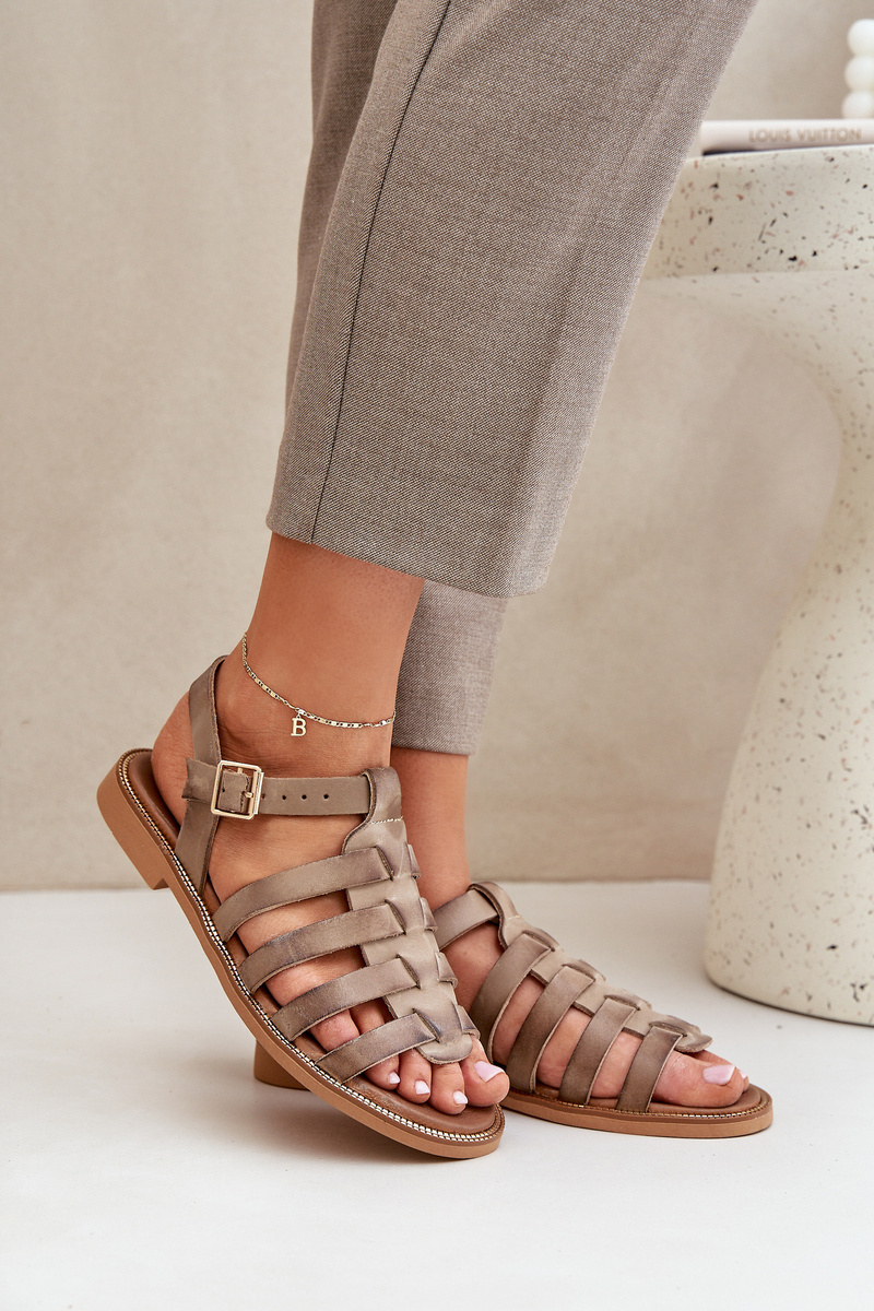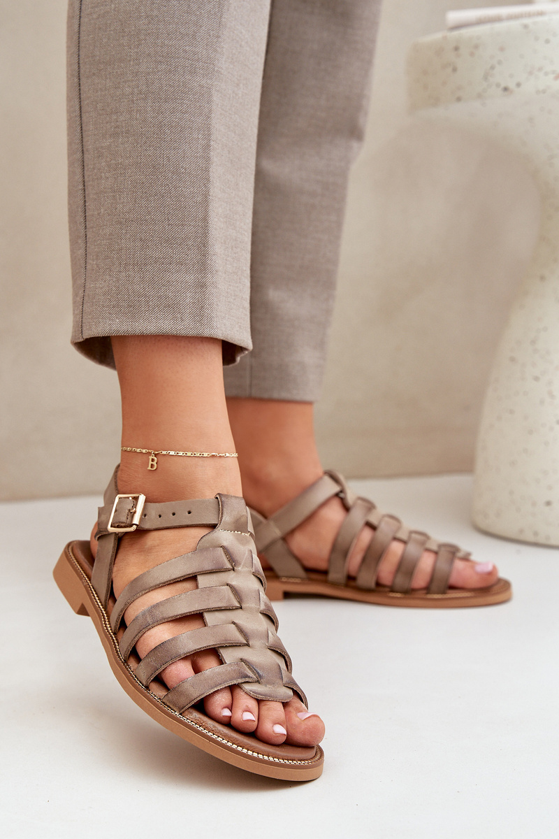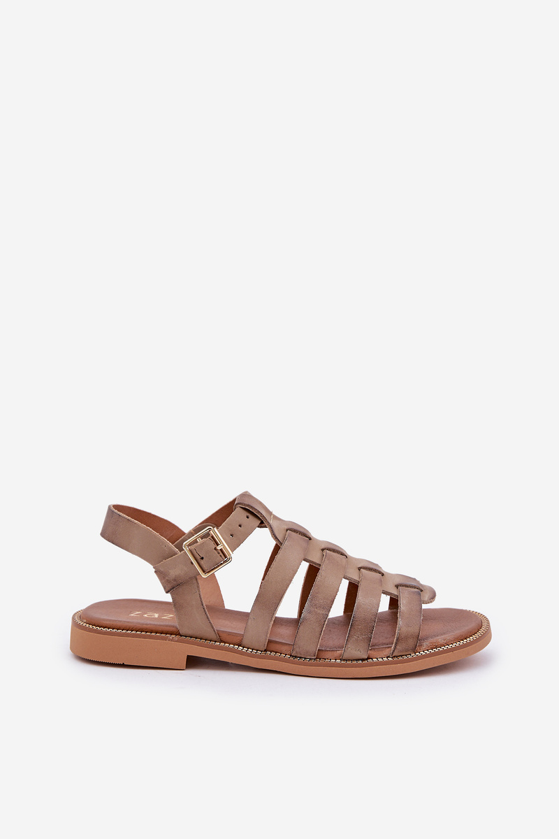 Шкіряні сандалі на плоскому каблуці темно-бежеві Зазу 3686