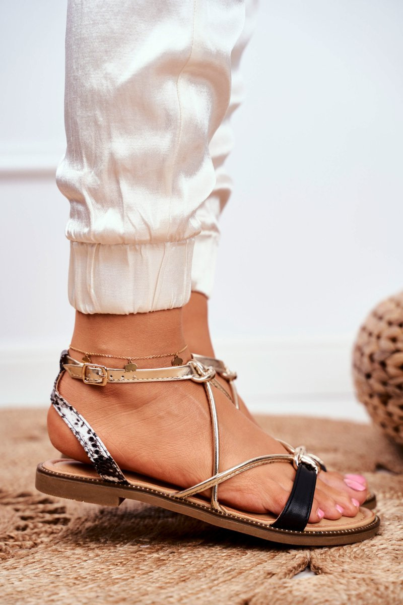Шкіряні сандалі на плоскій підошві S.Barski LJ281 Black-Gold