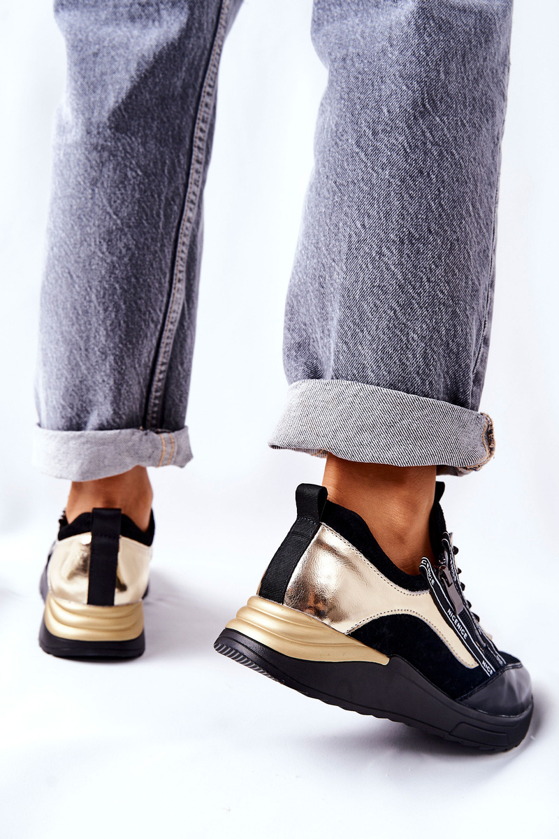 Шкіряні спортивні кросівки Чорно-золотий мінор