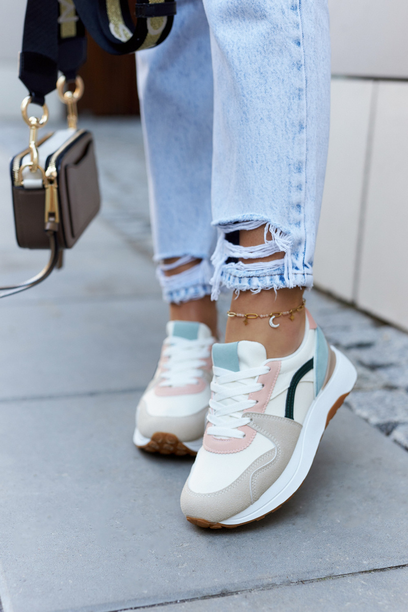 Шкіряні спортивні туфлі на зав'язках бежевого та зеленого кольору Coryse