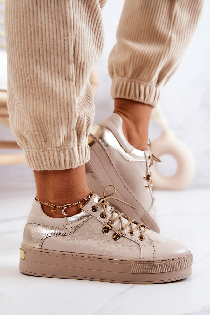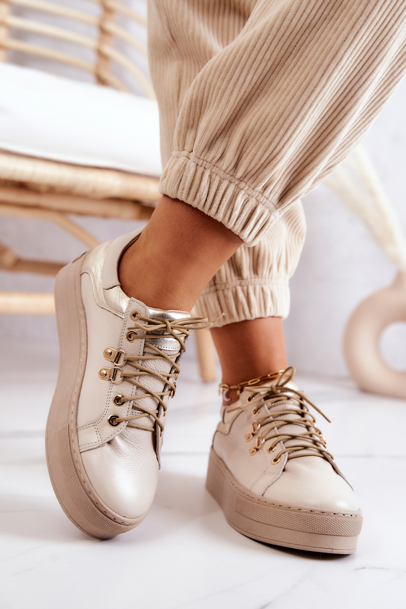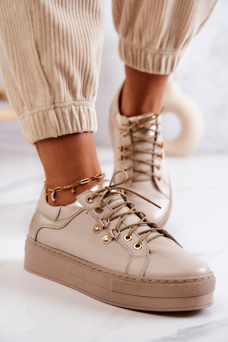 Шкіряні спортивні туфлі на платформі світло-бежевого кольору Mary Ann