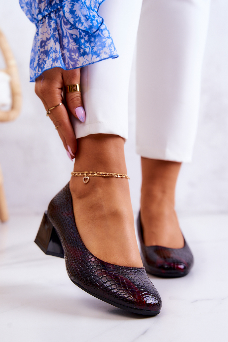 Шкіряні туфлі зі зміїної шкіри бордового кольору