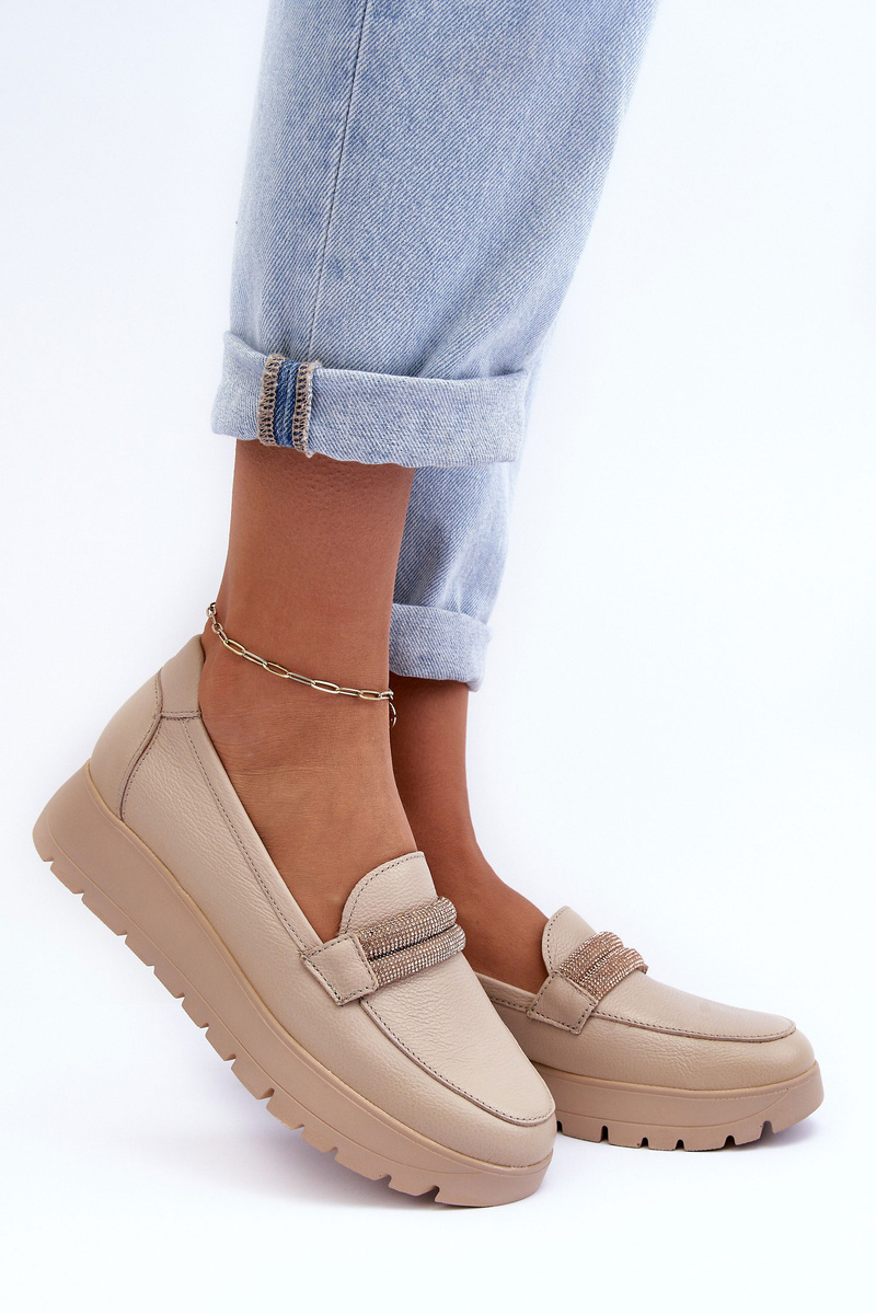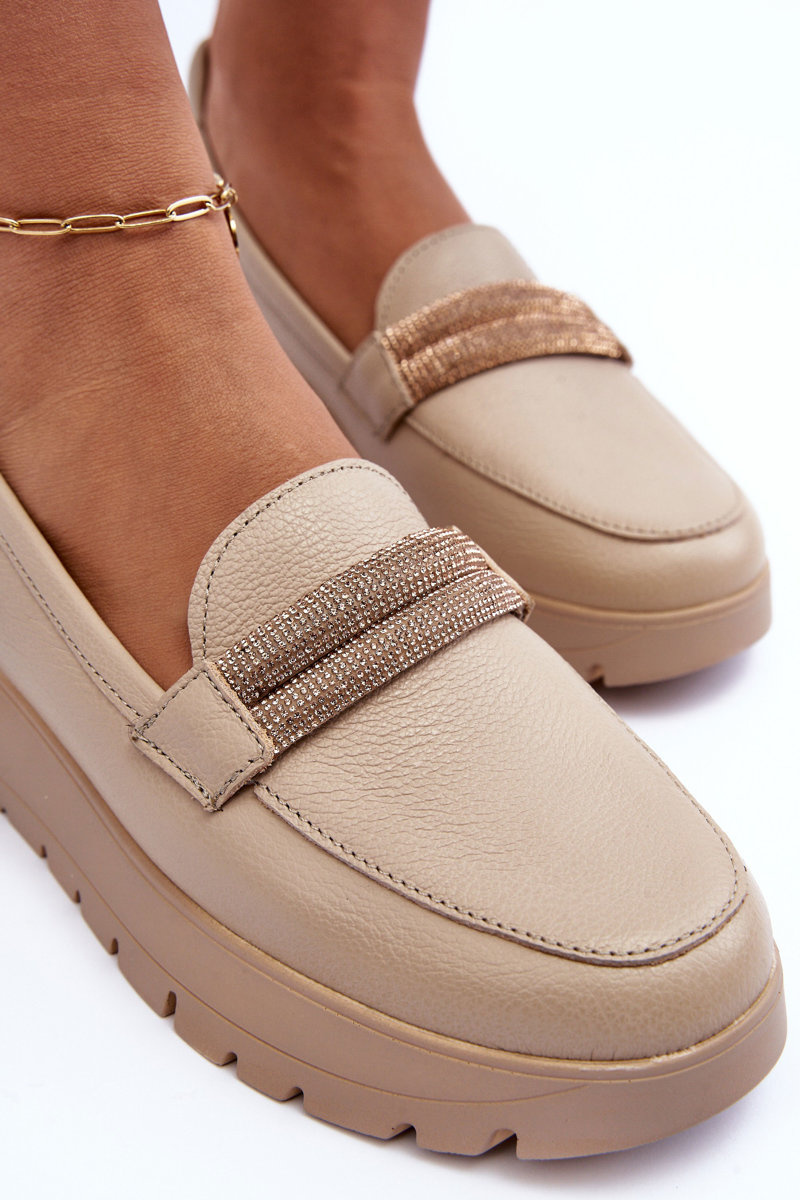 Шкіряні туфлі на платформі з орнаментом світло-бежевий Lehira