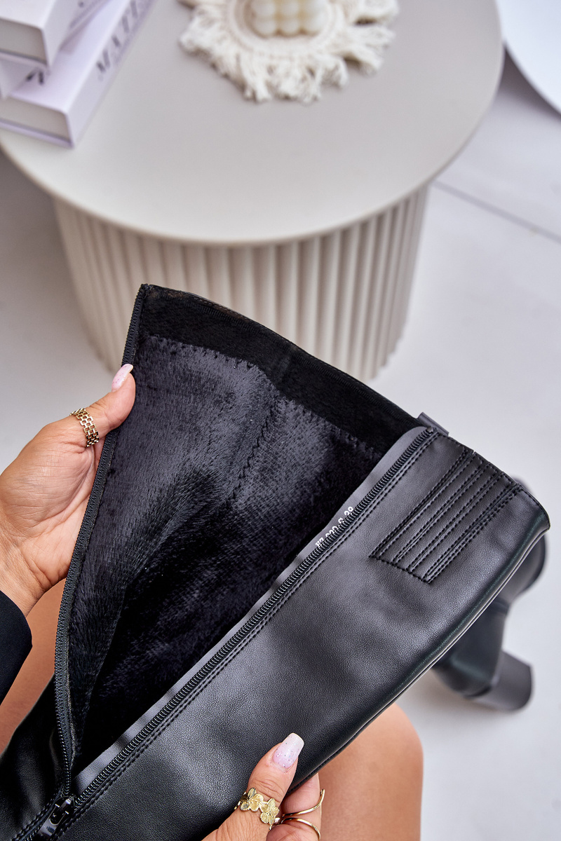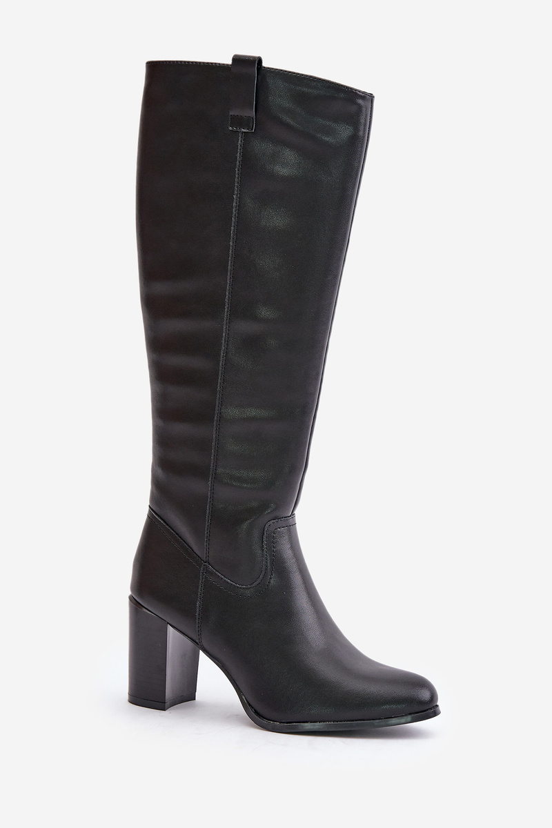 Елегантні шкіряні чоботи до коліна — відмінний вибір для прохолодних днів. Виготовлений з натуральної шкіри. Утеплений салон забезпечує тепло і комфорт. Модель застібається на блискавку для зручного носіння. Блоковий каблук додає стильний акцент силуету. Мигдалеподібні пальці. Цей елегантний фасон ідеально доповнює наряди з сукнями та спідницями! Обираючи розмір, орієнтуйтеся на таблицю розмірів.