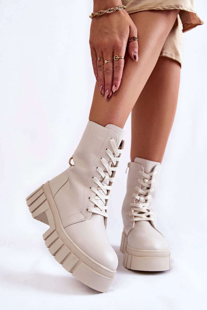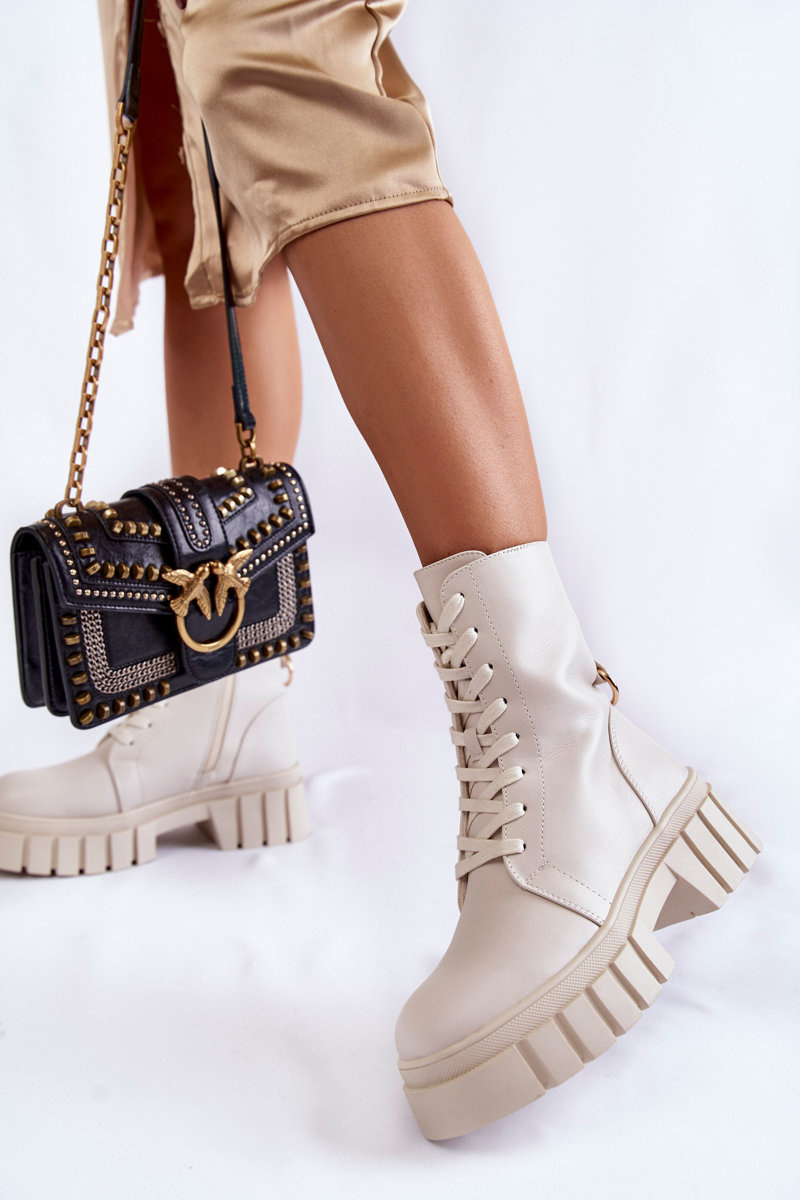 Шкіряні утеплені черевики на платформі світло-бежеві Telisa