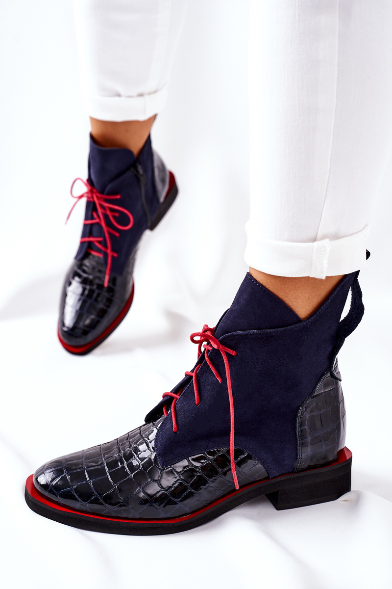 Шкіряні черевики з малюнком алігатор темно-сині Bruselle