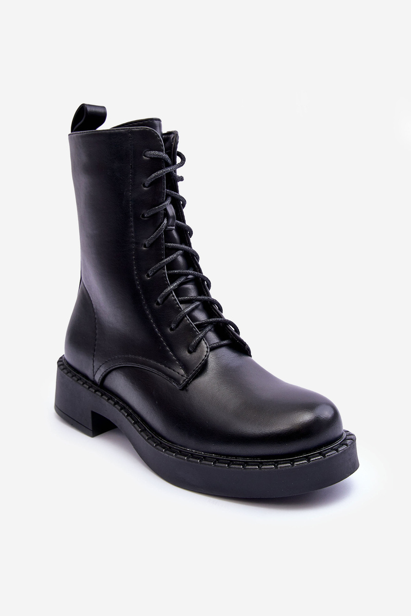 Класичні ботильйони виготовлені з еко шкіри. Комплект на плоскій каблуці і платформі. Збоку верх застібається на блискавку і додатково шнурується. Носок цього взуття посилений. Утеплений устілкою для взуття. Чудова модель для осіннього та зимового стилю! При виборі розміру орієнтуйтеся на таблицю розмірів.