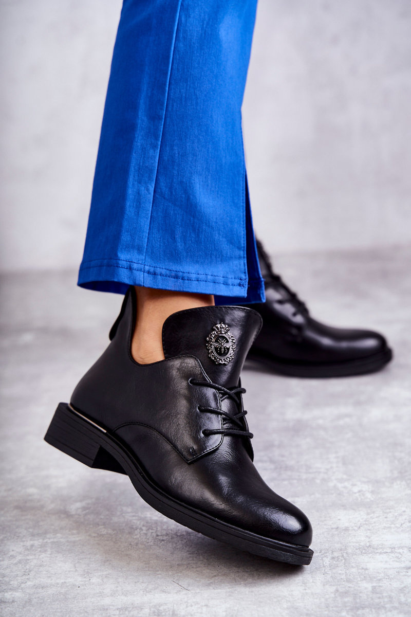 Шкіряні черевики на шнурівці з вирізами Чорні Fabiana