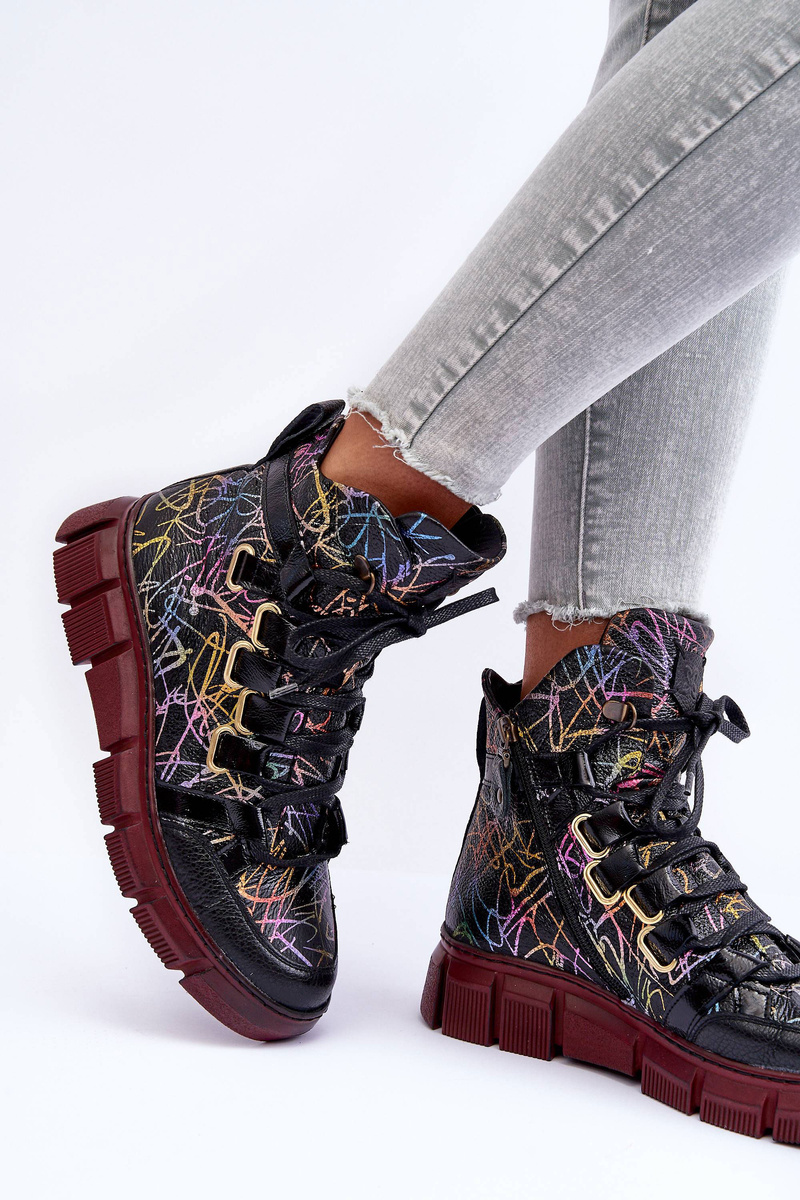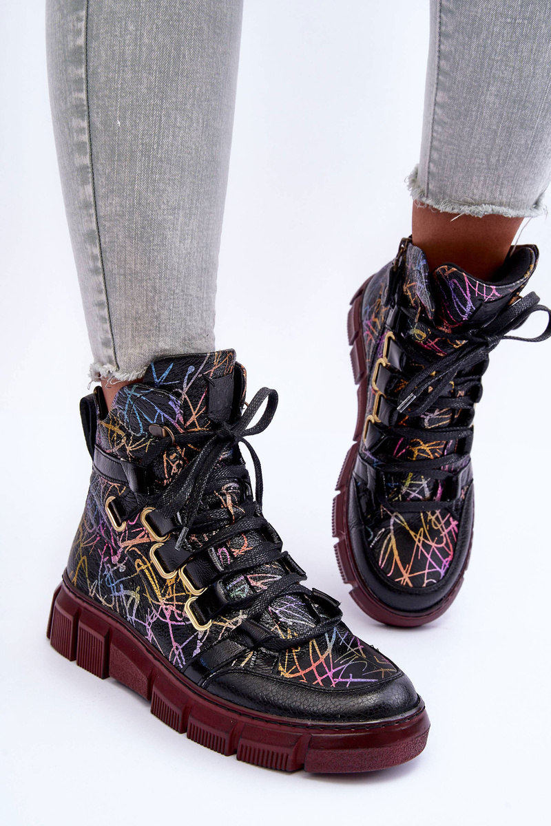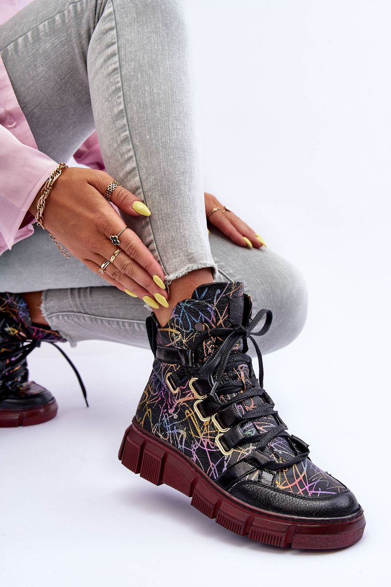 Жіночі черевики торгової марки Maciejka виготовлені з натуральної шкіри найвищої якості. Дана модель тримається на плоскій каблуці і платформі. Черевики застібаються на блискавку з внутрішньої сторони верху і додатково зашнуровуються. М'яка устілка забезпечує комфортне використання взуття. Носок жорсткий. При виборі розміру орієнтуйтеся на таблицю розмірів.